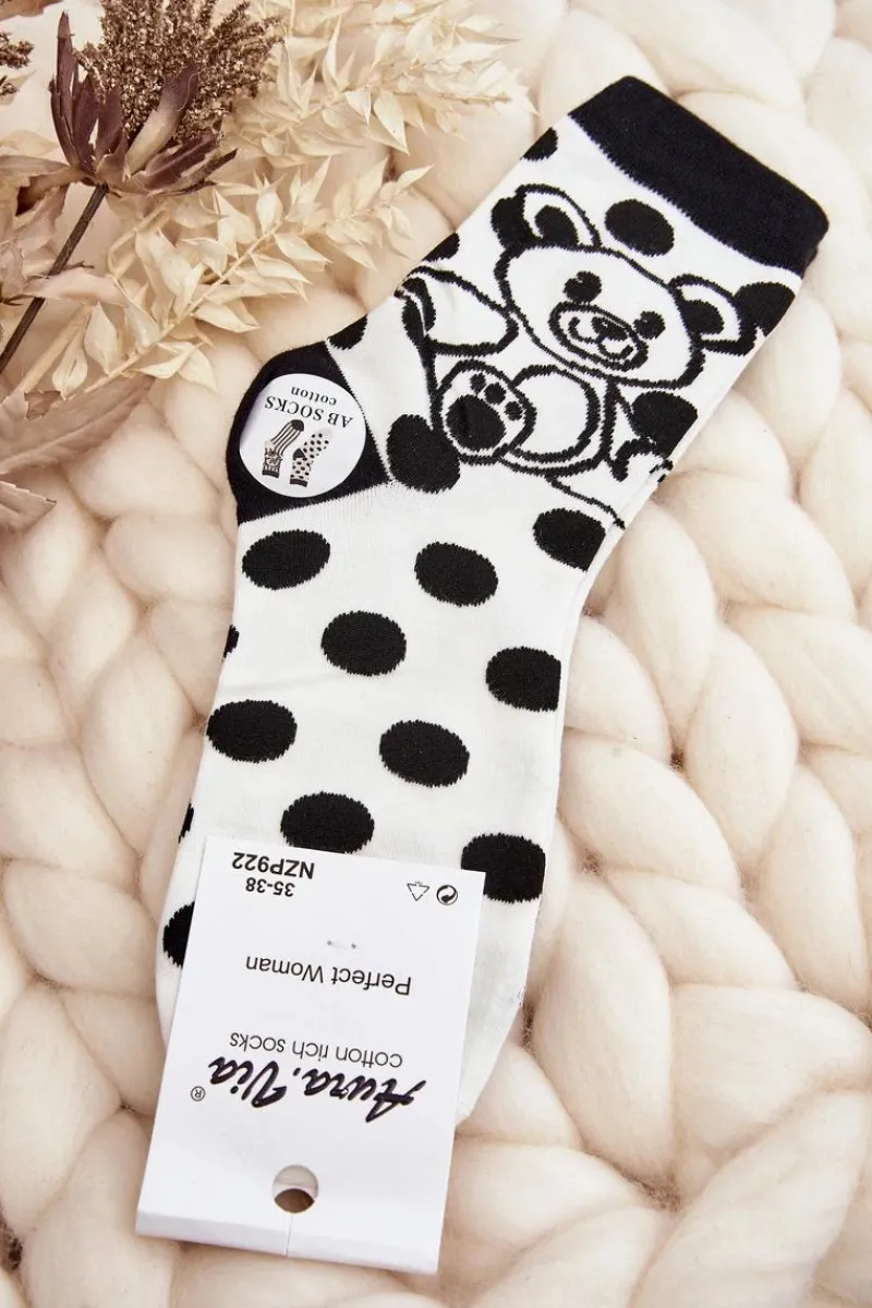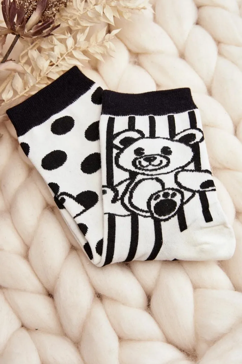 Skarpetki|Skarpetki>Aura.via Skarpety Damskie Nie Do Pary Z Misiem Czarno-Białe – Wzór 4