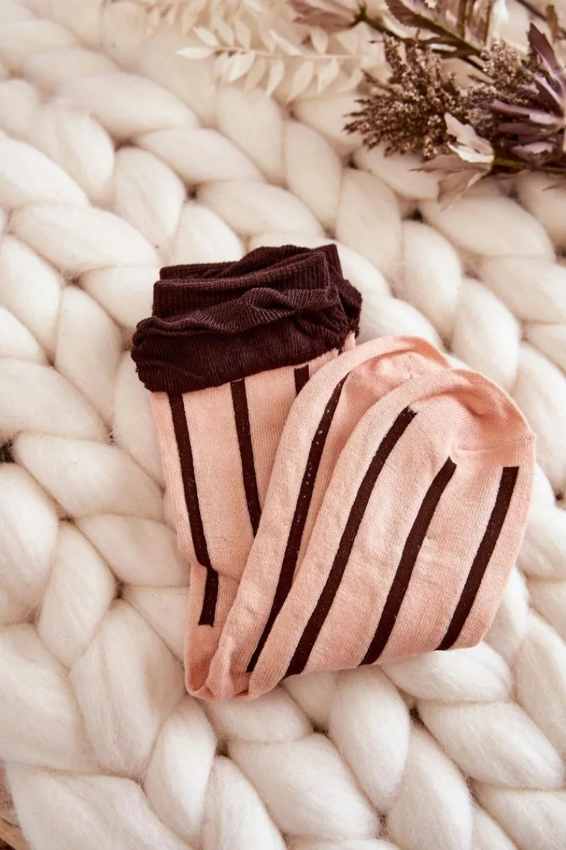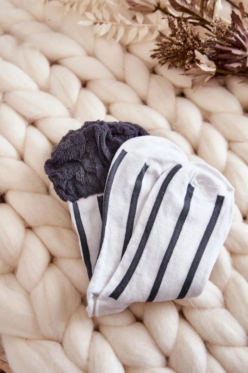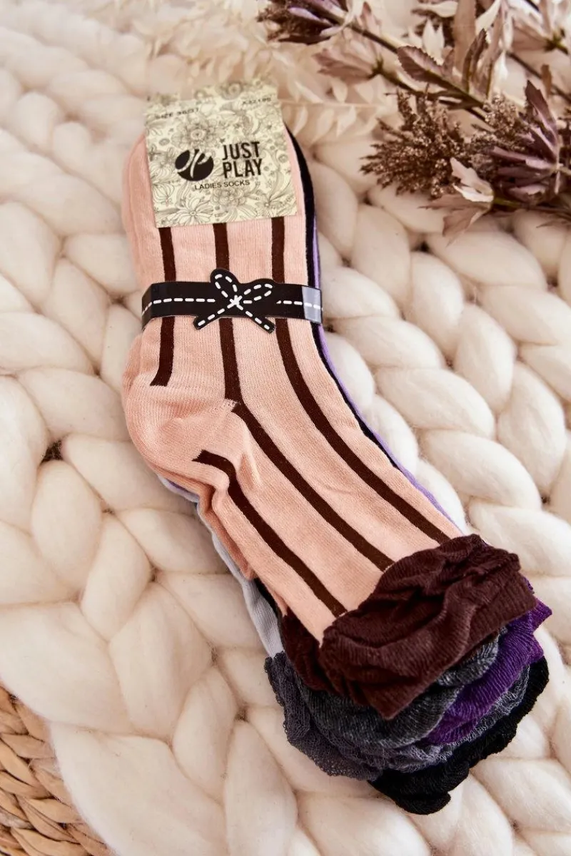 Damskie skarpetki zostały wykonane w 100% z bawełny. Posiadają delikatną falbankę przy ściągaczu. Model w paski. Skarpetki za kostkę świetnie sprawdzą się do wielu stylizacji. Zestaw zawiera 5 par skarpetek. Tego modelu nie powinno zabraknąć w Twojej szafie!
