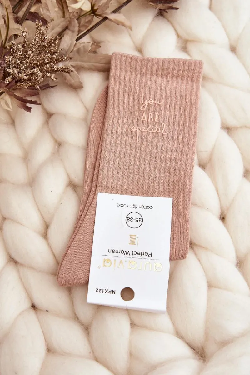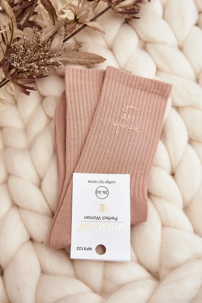 Skarpetki|Skarpetki>Just Play Damskie Gładkie Skarpety Z Napisem Różowe