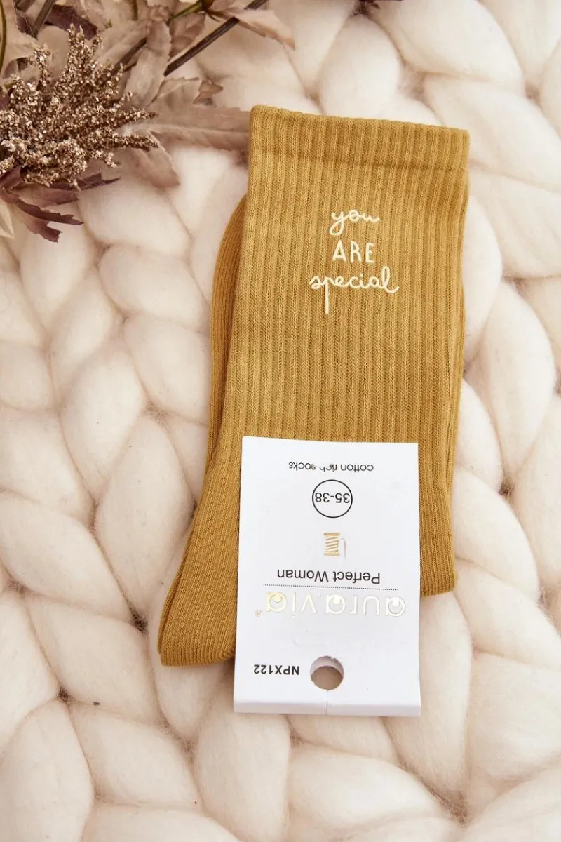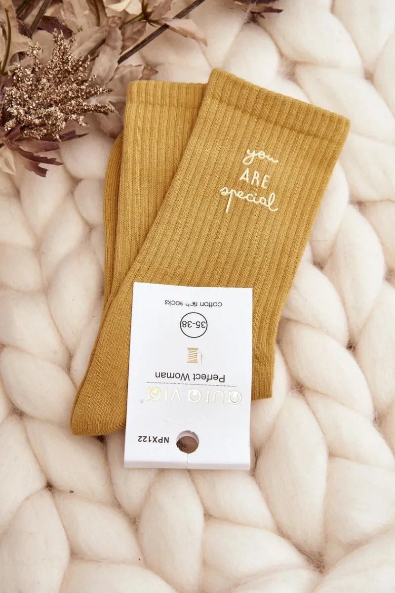 Skarpetki|Skarpetki>Just Play Damskie Gładkie Skarpety Z Napisem Żółte