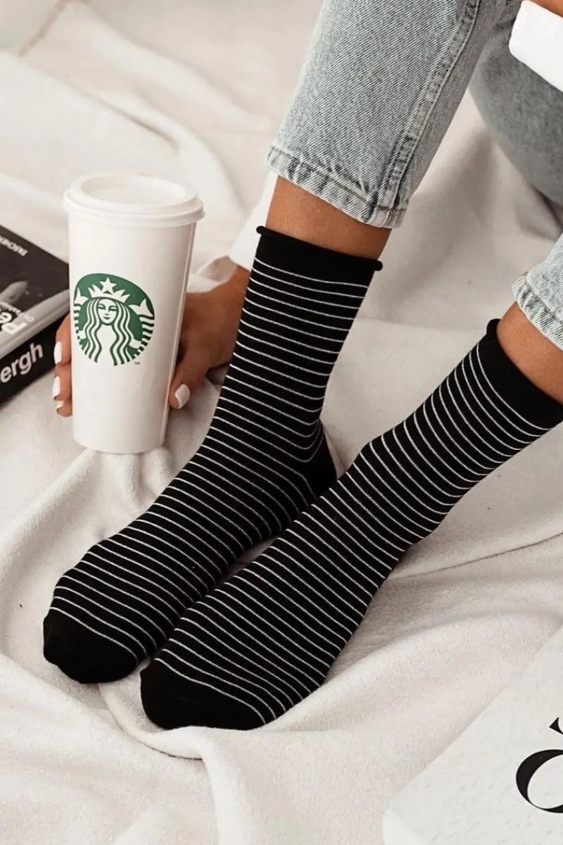 Skarpetki|Skarpetki>Milena Damskie Skarpetki Bezuciskowe W Cienkie Paseczki Czarne