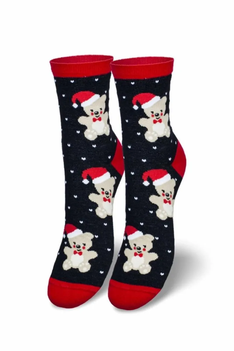 Skarpetki|Skarpetki>Milena Damskie Skarpetki Świąteczne Miś W Czapce Mikołaja Czarne
