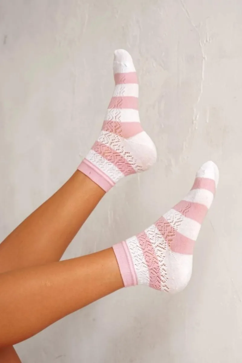 Skarpetki|Skarpetki>Milena Skarpetki Damskie Ażurowe W Paski Biało-Różowe
