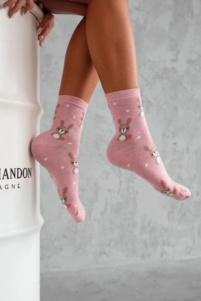 Skarpetki|Skarpetki>Milena Skarpetki damskie Króliki i Kropki Różowe