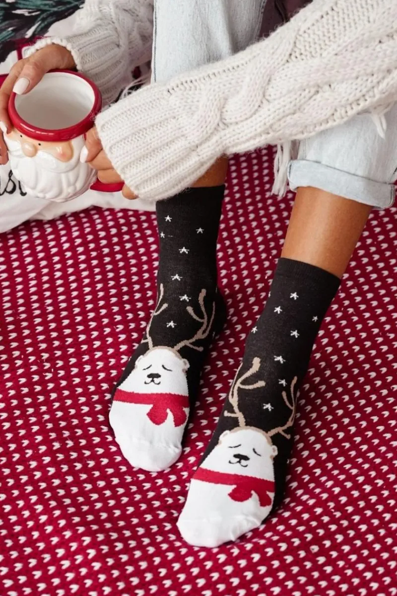 Skarpetki|Skarpetki>Milena Skarpetki Damskie Świąteczne Śpiący Miś Czarne