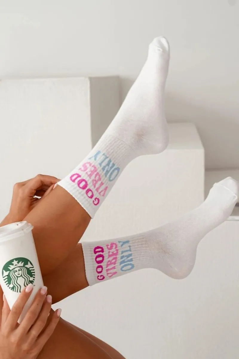 Skarpetki|Skarpetki>Milena Skarpetki Damskie Z Napisem Good Vibes Only Białe