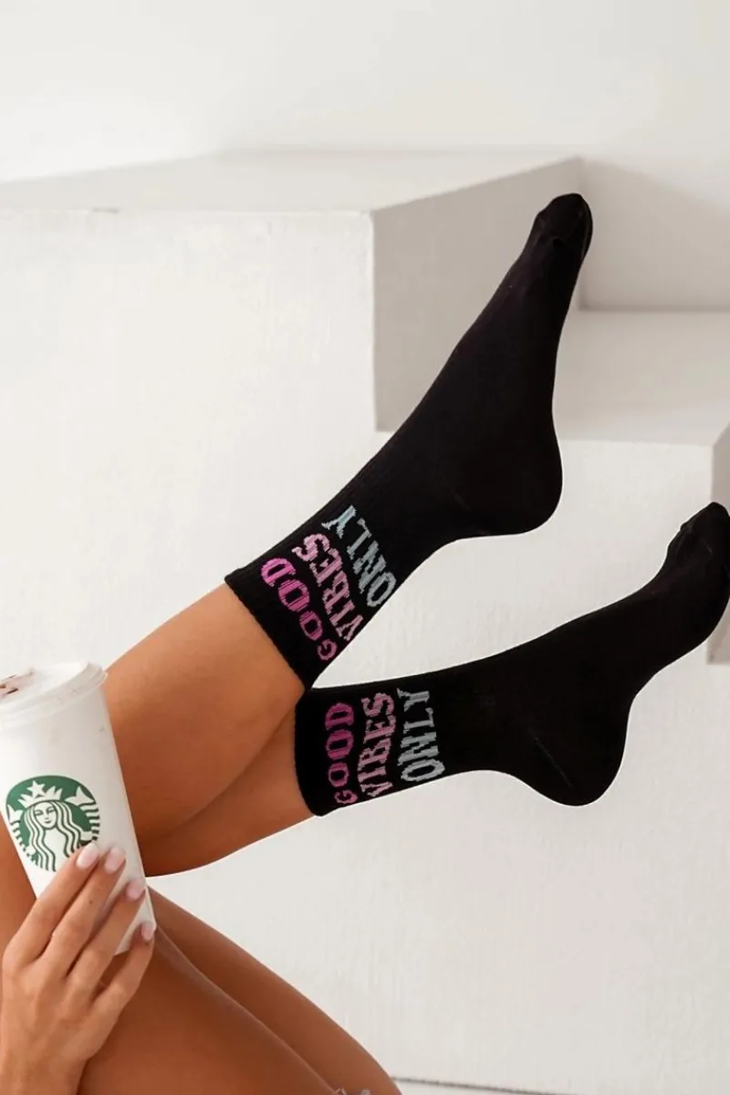 Skarpetki|Skarpetki>Milena Skarpetki Damskie Z Napisem Good Vibes Only Czarne