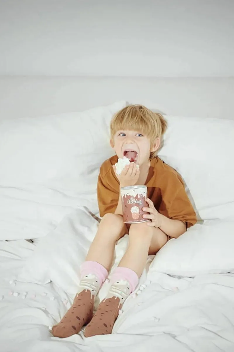 Czym byłyby zimowe niedzielne poranki bez słodkich przyjemności? Śnieg za oknem, pyszne śniadanko i domowa atmosfera przeplatana dziecięcą radością. Nie pozostało nic innego jak założyć dzieciom ciepłe kolorowe skarpetki frotte, schować je pod kocyk na kanapie i zanurzyć się razem z nimi w bawełnianej przyjemności. Najlepsze duety tworzą się same – my też taki stworzyliśmy. W środku kartonu schowaliśmy puszkę HOT CHOCOLATE i pudełko MARSHMALLOWS. Dziecięce stopy będą chciały aż się uściskać na sam ich widok. Ale zaraz! To są przecież skarpetki bezuciskowe!
