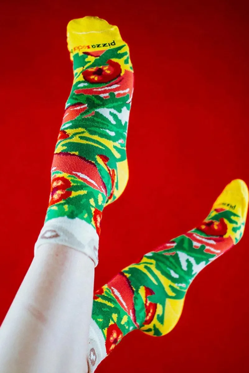 Cała pizza to sporo, to prawda. Mimo to wcale nie musisz rezygnować z naszych Pizza Skarpetek w Pudełku — nasze Pizza Skarpetki w wersji jednoparowej, to propozycja specjalnie dla Ciebie! Pizza Skarpetki w Pudełku jeden kawałek o smaku pizzy włoskiej to jedna para skarpet klasycznej pizzy włoskiej, również starannie zapakowanych w pudełko od prawdziwej pizzy! Zaskocz swoich bliskich i znajomych oryginalnym skarpetkowym prezentem!