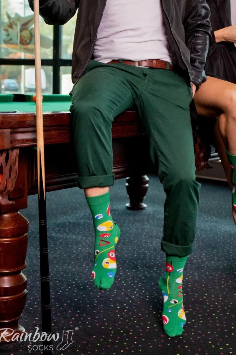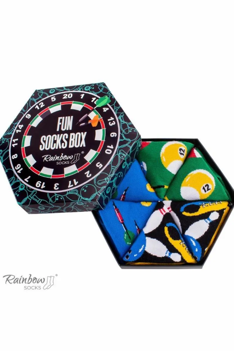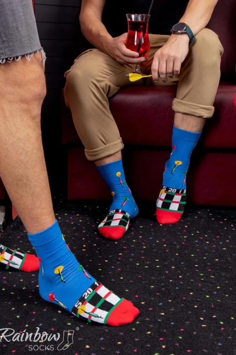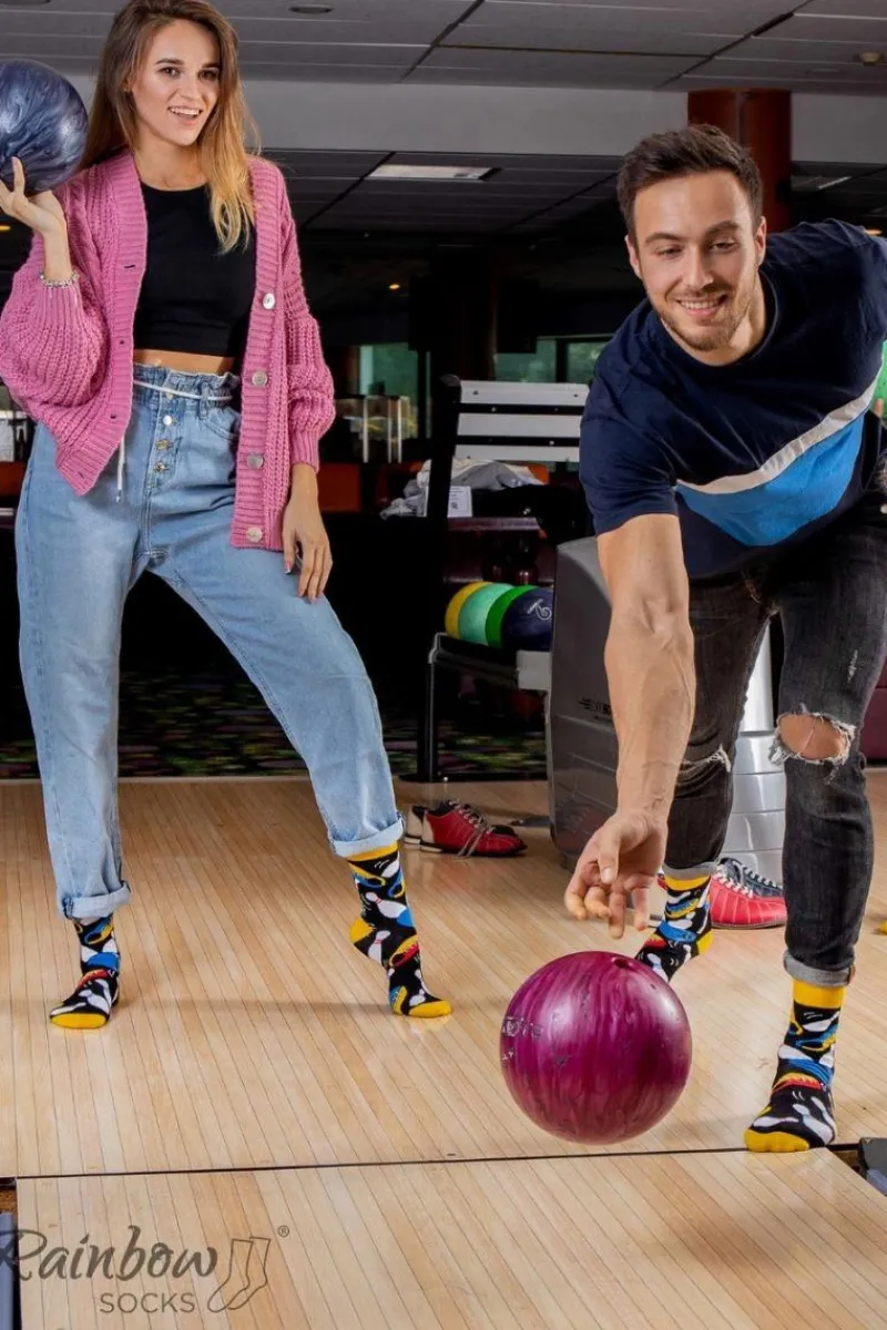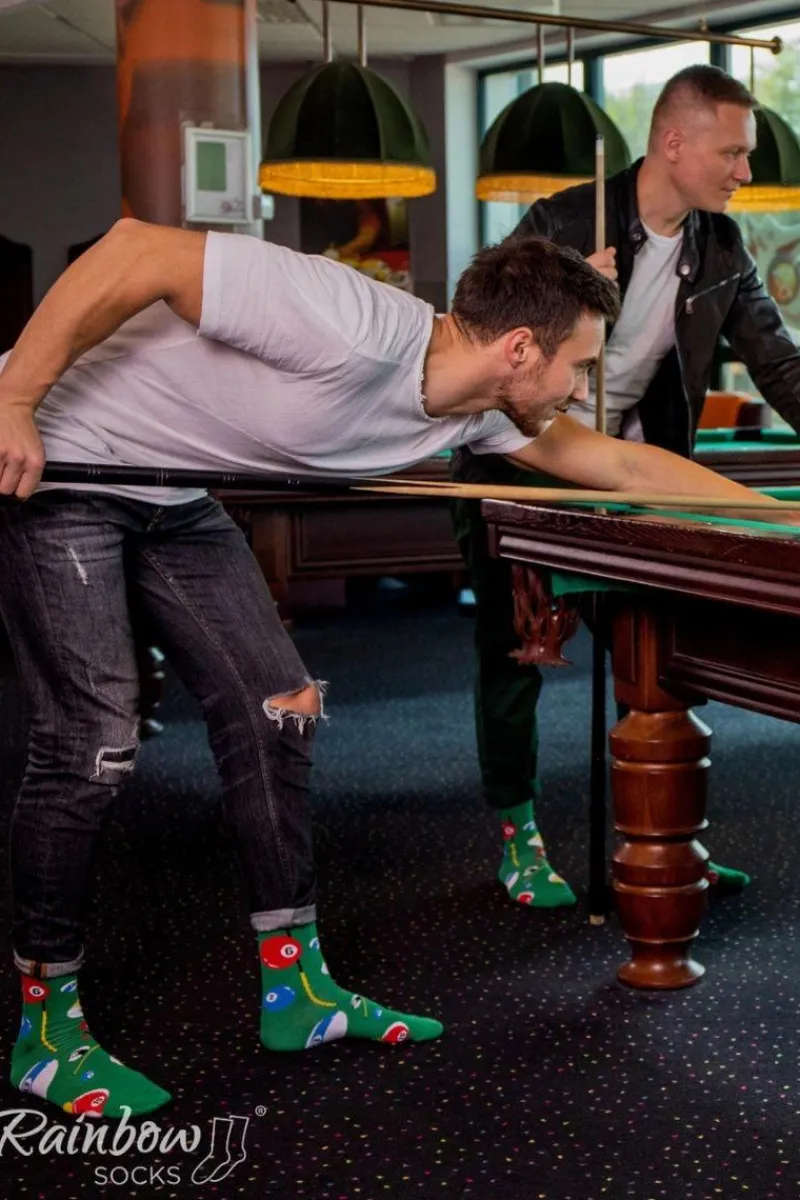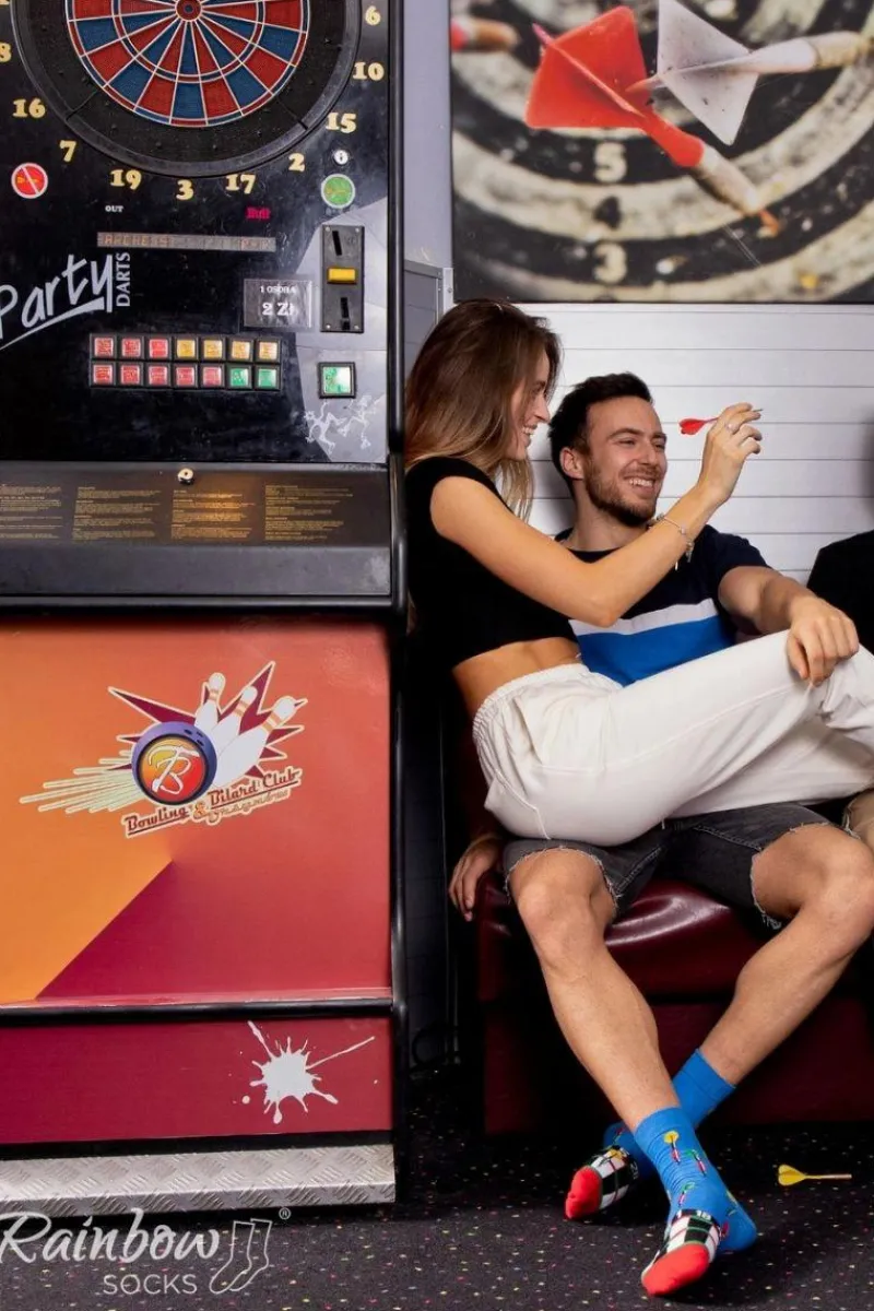 Długie skarpetki dla ludzi kochających bawić się w sportowym duchu. Przebojowe skarpetki dostępne są w trzech wersjach – kręgle, rzutki oraz bilard. Wysoka jakość i wyjątkowy design skarpetek wpływają na czystą przyjemność ich używania.