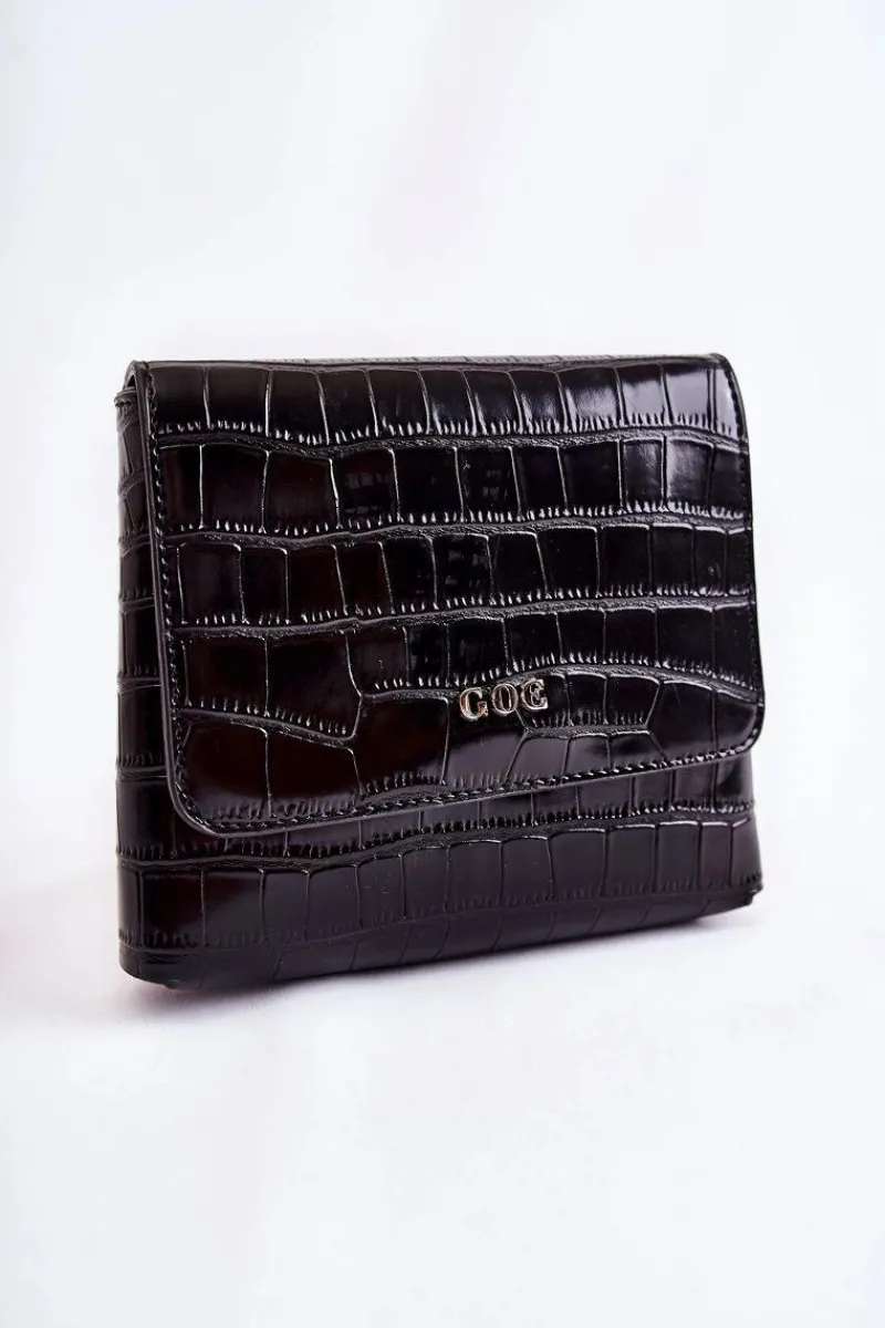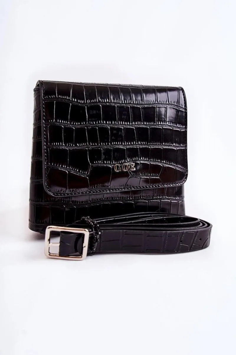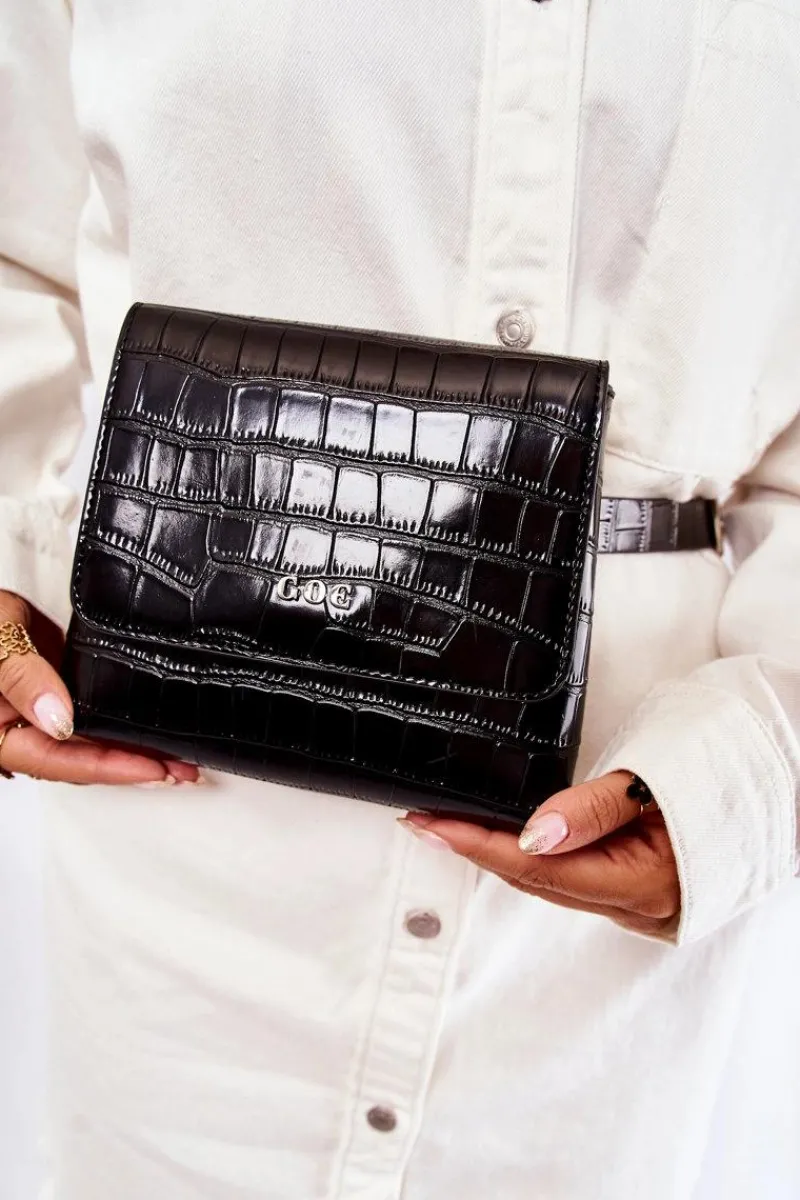 Mała torebka od marki GOE została wykonana z wysokiej jakości eko skóry. Z przodu znajduje się logo marki GOE. Torebka zamykana na klapę z magnesem. Posiada jedną komorę, w której znajduje się jedna kieszonka zamykana na suwak. Podszewka wykonana z tkaniny w ozdobny wzór. Dodatkowo do torebki jest dołączony regulowany, odpinany pasek.
