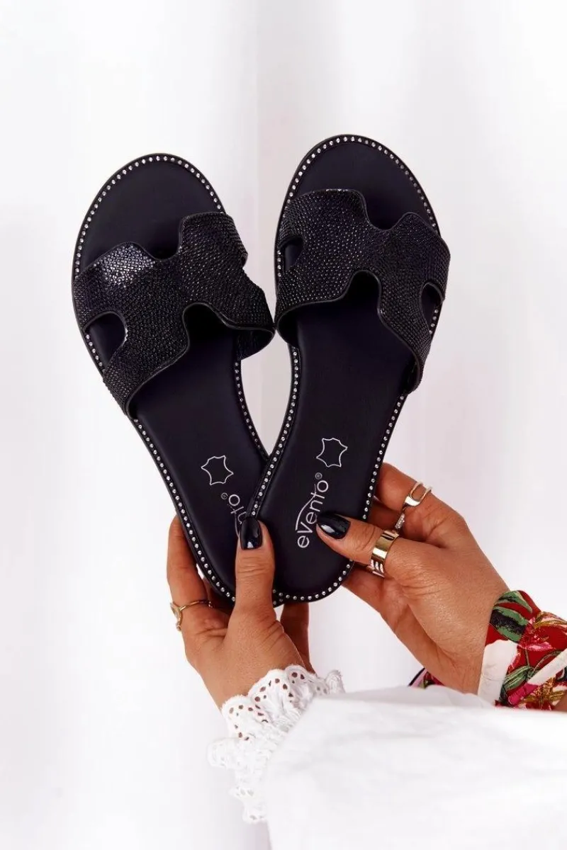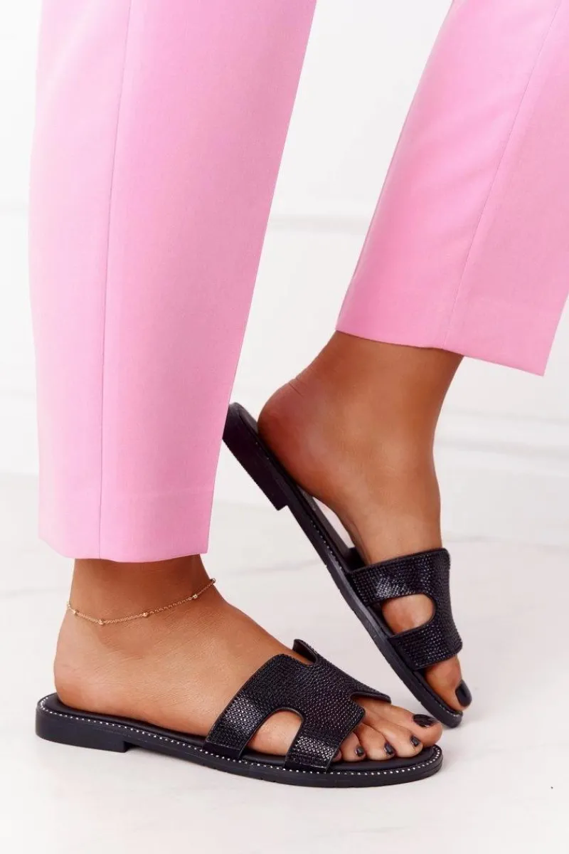 Eleganckie klapki z cyrkoniami. Buty wykonane są ze skóry ekologicznej z dbałością o każdy detal. Miękka wkładka ze skóry naturalnej oraz antypoślizgowa podeszwa zadbają o Twój komfort. Klapki dopełnią wiele letnich stylizacji! Koniecznie sprawdź całą naszą kolekcję damskich klapek. Przy wyborze rozmiaru prosimy sugerować się tabelą rozmiarów.