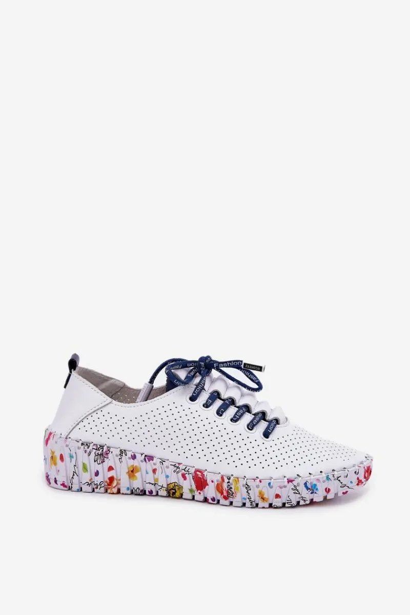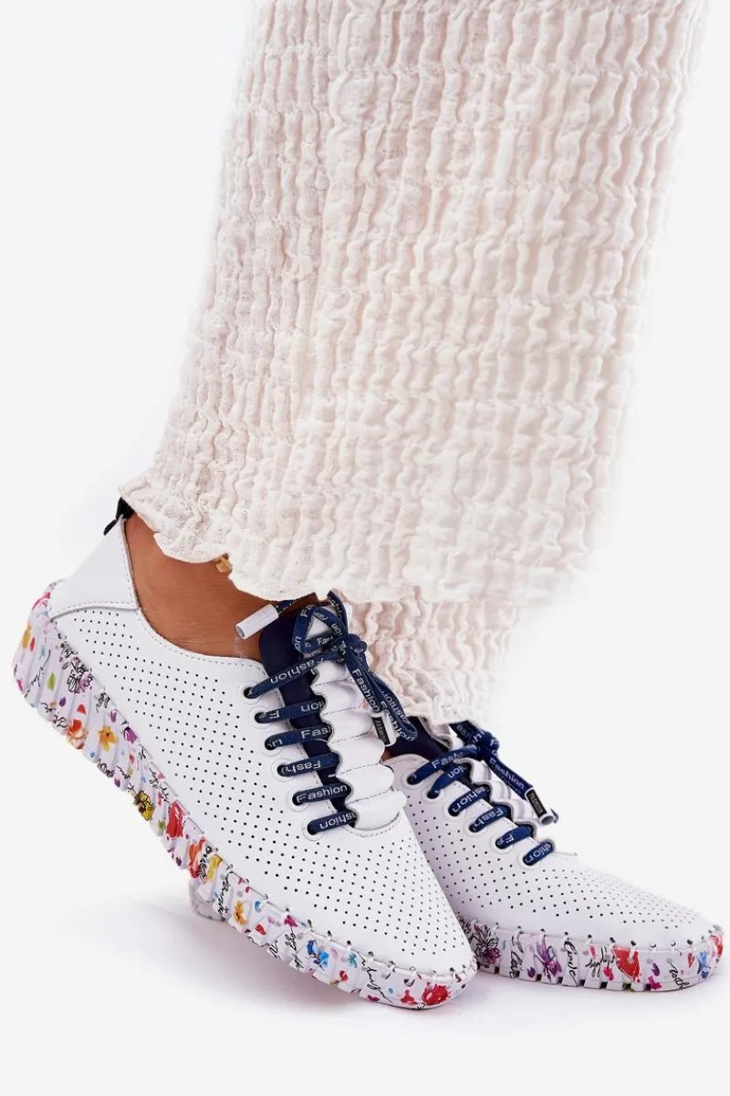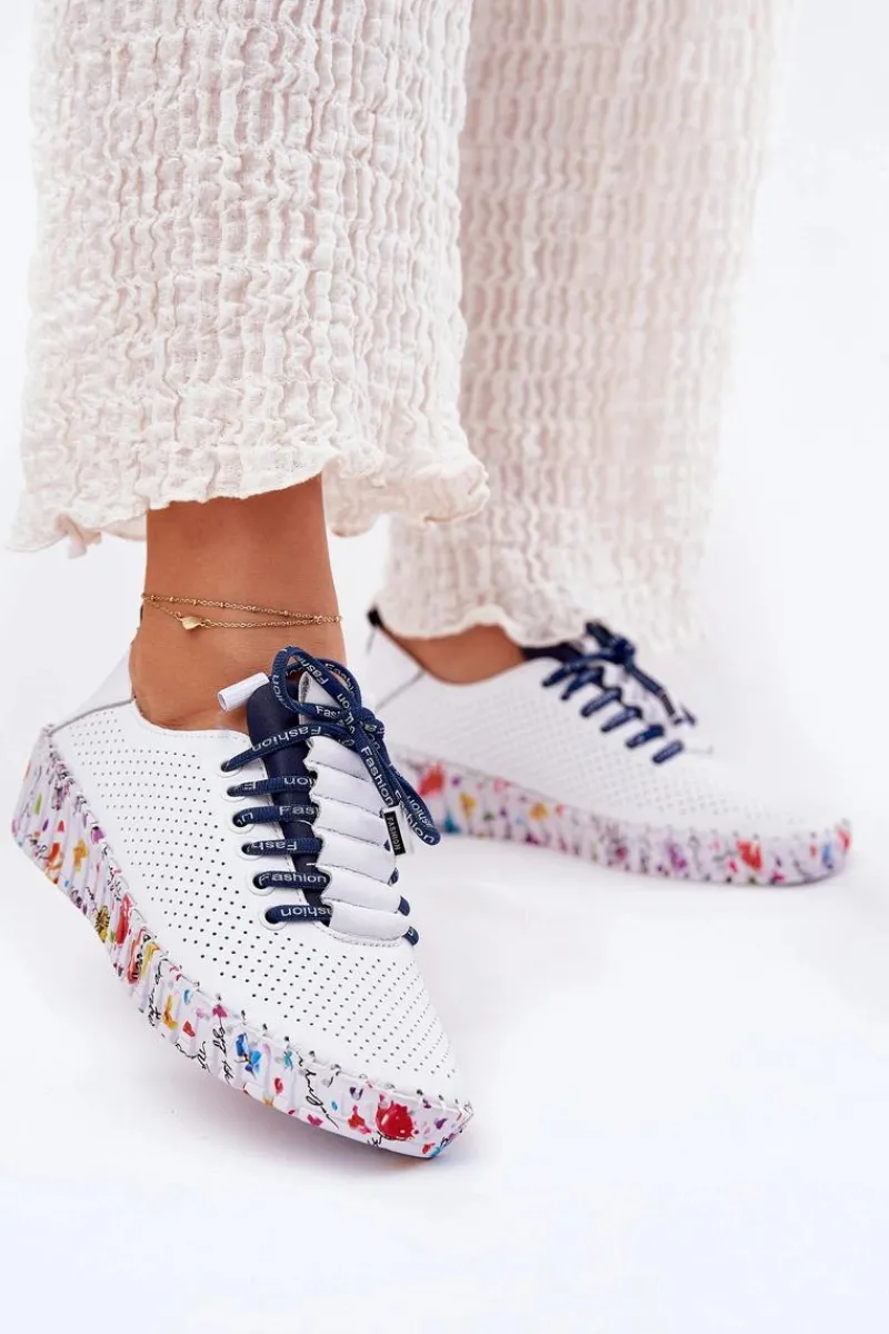 Półbuty damskie wykonane z naturalnej skóry. Osadzone na wzorzystej platformie z delikatnym koturnem, łączą wygodę z modnym designem. Zaokrąglone noski zapewniają komfort przez cały dzień, a sznurowany model umożliwia idealne dopasowanie do stopy. Miękka wkładka dodatkowo zwiększa wygodę noszenia. Te półbuty będą doskonałym wyborem do codziennych stylizacji, wprowadzając do nich subtelną elegancję i lekkość. Przy wyborze rozmiaru prosimy sugerować się tabelą rozmiarów.