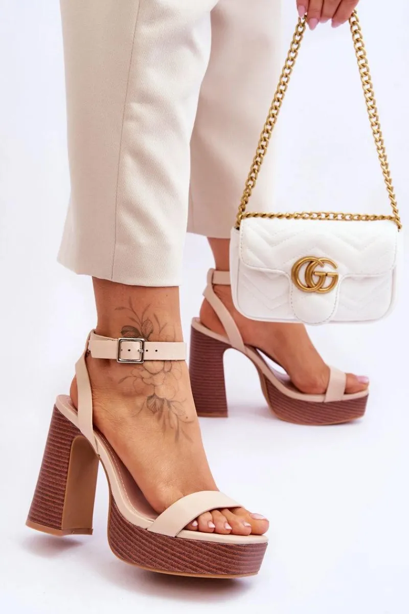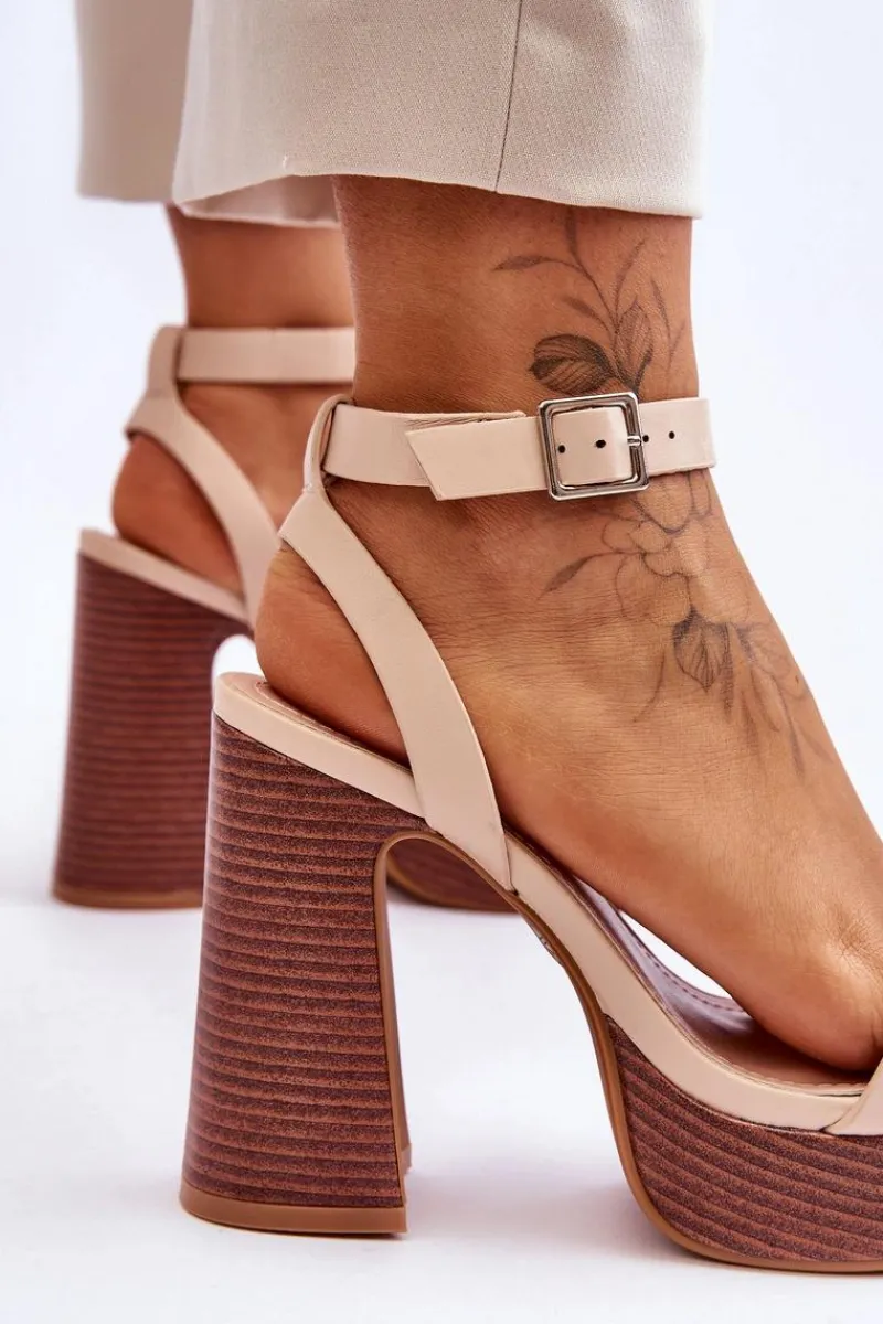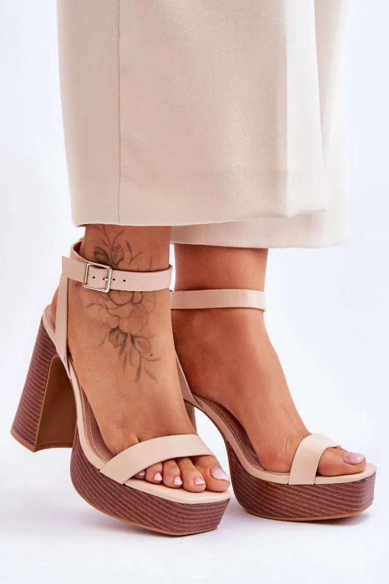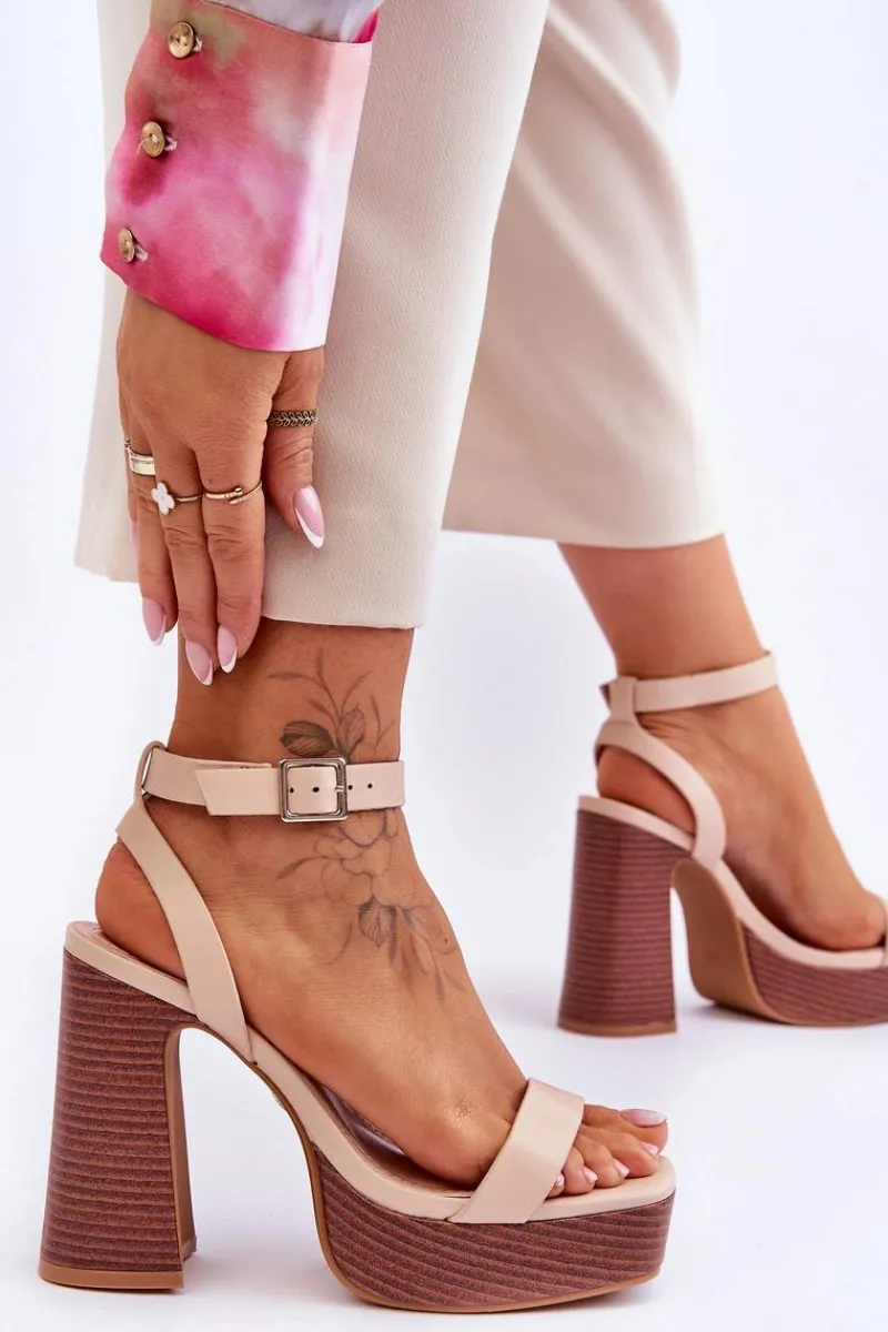 Modne sandałki damskie zostały wykonane z eko skóry. Osadzone na masywnym obcasie w postaci słupka i platformie. Zapinane na regulowany pasek ze sprzączką. Sandałki posiadają odkryty, kwadratowy nosek oraz odkrytą piętę. Ten model powinien znaleźć się w Twojej szafie! Przy wyborze rozmiaru prosimy sugerować się tabelą rozmiarów.