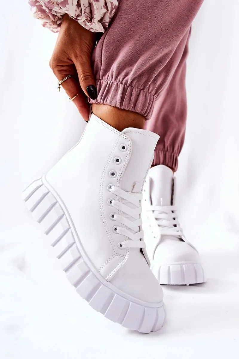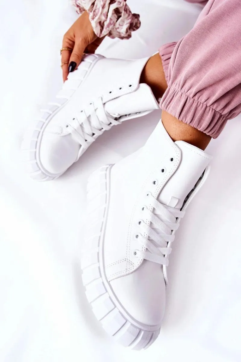 Skórzane Wysokie Trampki Na Platformie Białe Meniphise Damskie Trampki Damskie Wysokie