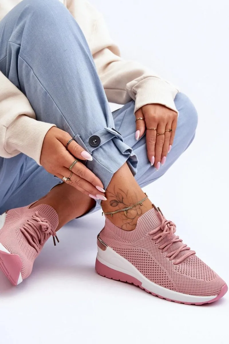Sneakersy Damskie>Boto Materiałowe Wsuwane Buty Sportowe Na Koturnie Różowe Visconti