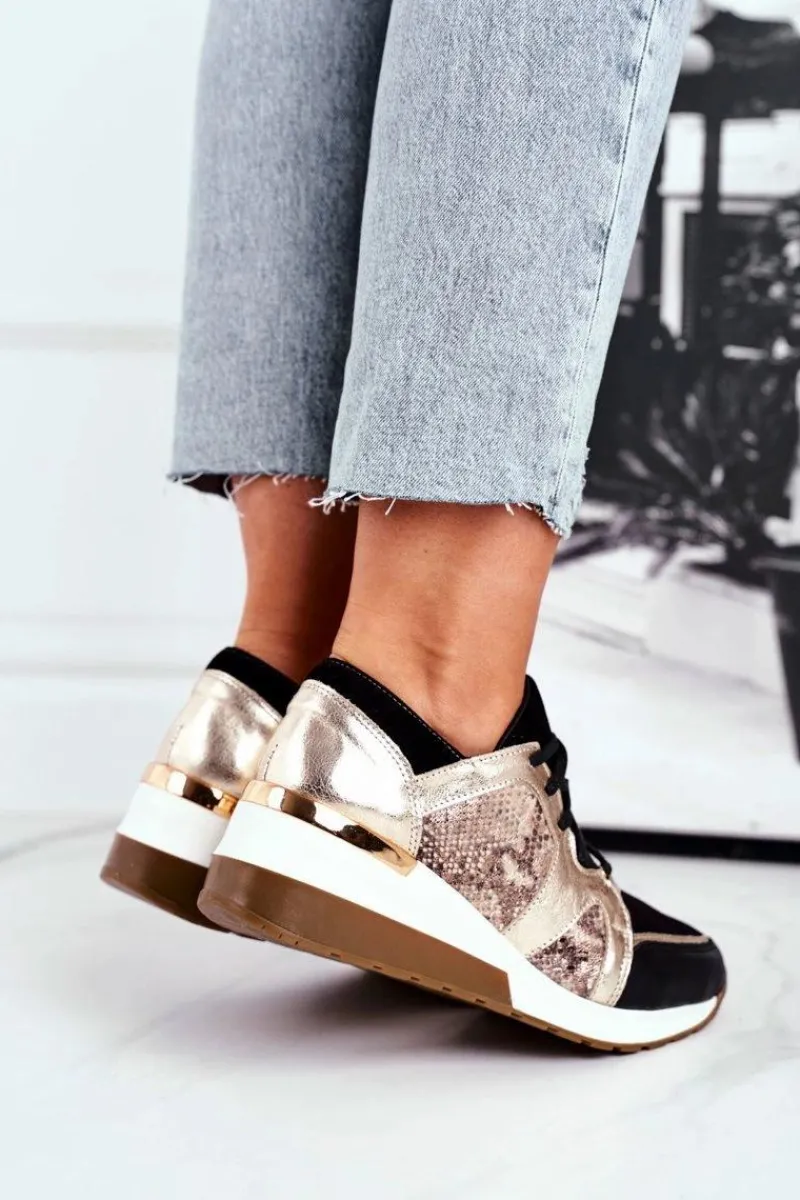 Sneakersy Damskie>Boto Skórzane Sneakersy Na Koturnie Złote Nicole 2465 Złoty