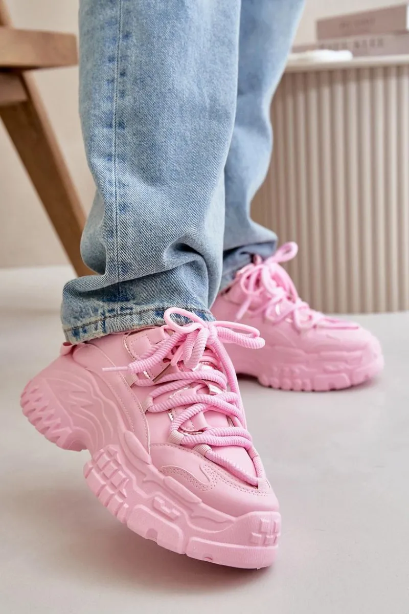 Sneakersy Damskie>Boto Sneakersy Damskie Na Masywnej Podeszwie Różowe Nevela