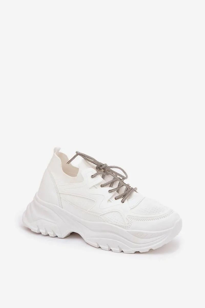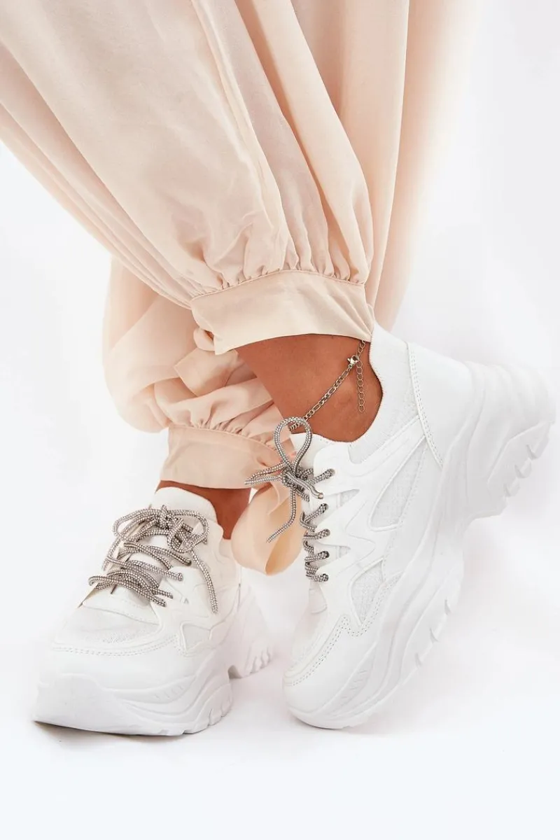 Sneakersy na masywnej podeszwie to idealny wybór dla kobiet, które kochają styl i wygodę! Model wsuwany z ozdobnym sznurowaniem. Miękka wkładka z pianki, dodatkowo pokryta materiałem zapewni wygodę. Ten niezwykle modny fason powinien być Twój! Przy wyborze rozmiaru prosimy kierować tabelą rozmiarów.