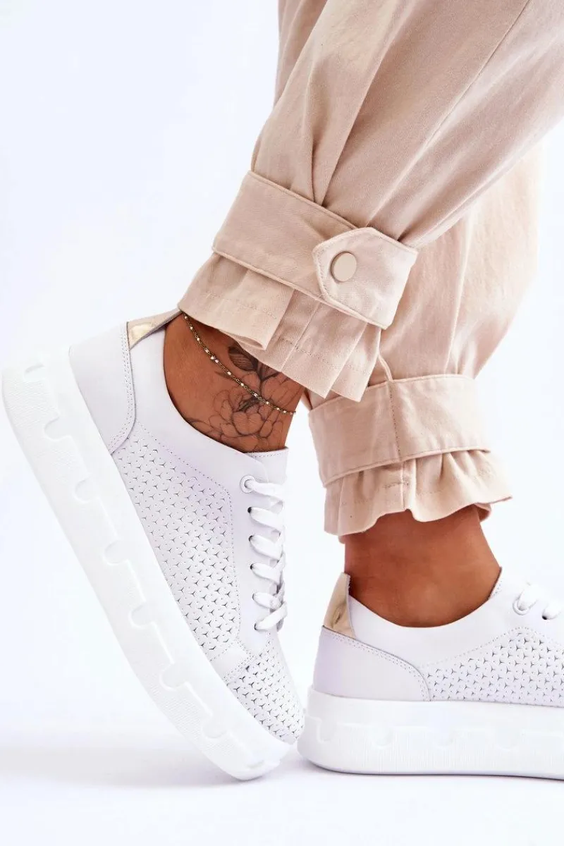 Te buty powinny być Twoje! Wykonane z wysokiej jakości naturalnej skóry z ciekawym wzorem. Osadzone na masywnej platformie wykonanej z tworzywa sztucznego. Model ten posiada klasyczne sznurowanie. Wkładka Comfort zapewni wygodę nawet przez cały dzień. Świetny model do dresów, jeansów czy dłuższych, prążkowanych sukienek.Przy wyborze rozmiaru prosimy sugerować się tabelą rozmiarów.