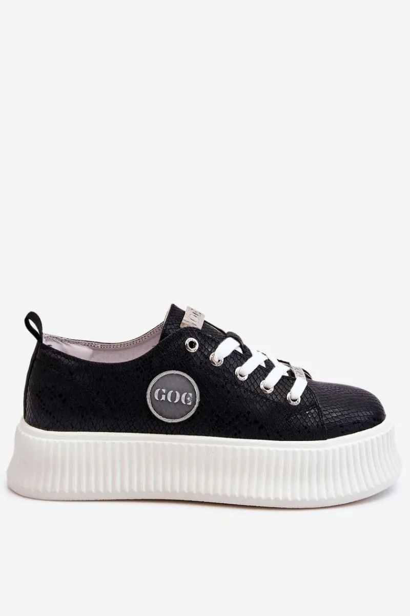 Świetne sneakersy damskie wykonane z wysokiej jakości eko skóry. Ten modny fason idealnie będzie komponował się z codziennymi stylizacjami. Klasycznie sznurowany model posiada z boku gumowy emblemat z logo marki GOE. Miękka, eko skórzana wkładka sprawi, że będziesz czuć się w nich komfortowo przez cały dzień. Masywna platforma posiada żłobienia po bokach. Przy wyborze rozmiaru prosimy sugerować się tabelą rozmiarów.