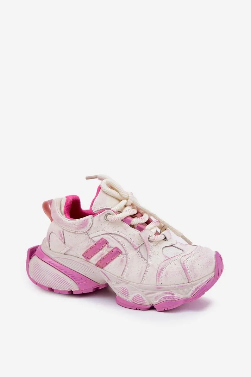 Stylowe sneakersy damskie od marki GOE, wykonane z wysokiej jakości skóry, to doskonałe połączenie wygody i modnego wyglądu. Cholewka ozdobiona brokatem dodaje butom wyjątkowego blasku, przyciągając wzrok. Masywna podeszwa zapewnia stabilność i komfort, a grube sznurowanie nadaje im odważnego charakteru. Te sneakersy to idealny wybór do codziennych stylizacji, które łączą elegancję z odrobiną wyrazistego stylu. Przy wyborze rozmiaru prosimy sugerować się tabelą rozmiarów.