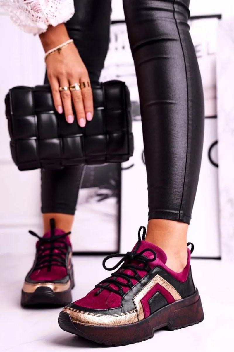 Sneakersy Damskie|Półbuty Skórzane>Maciejka Damskie Półbuty Sneakersy Skórzane Bordowe 04731-23