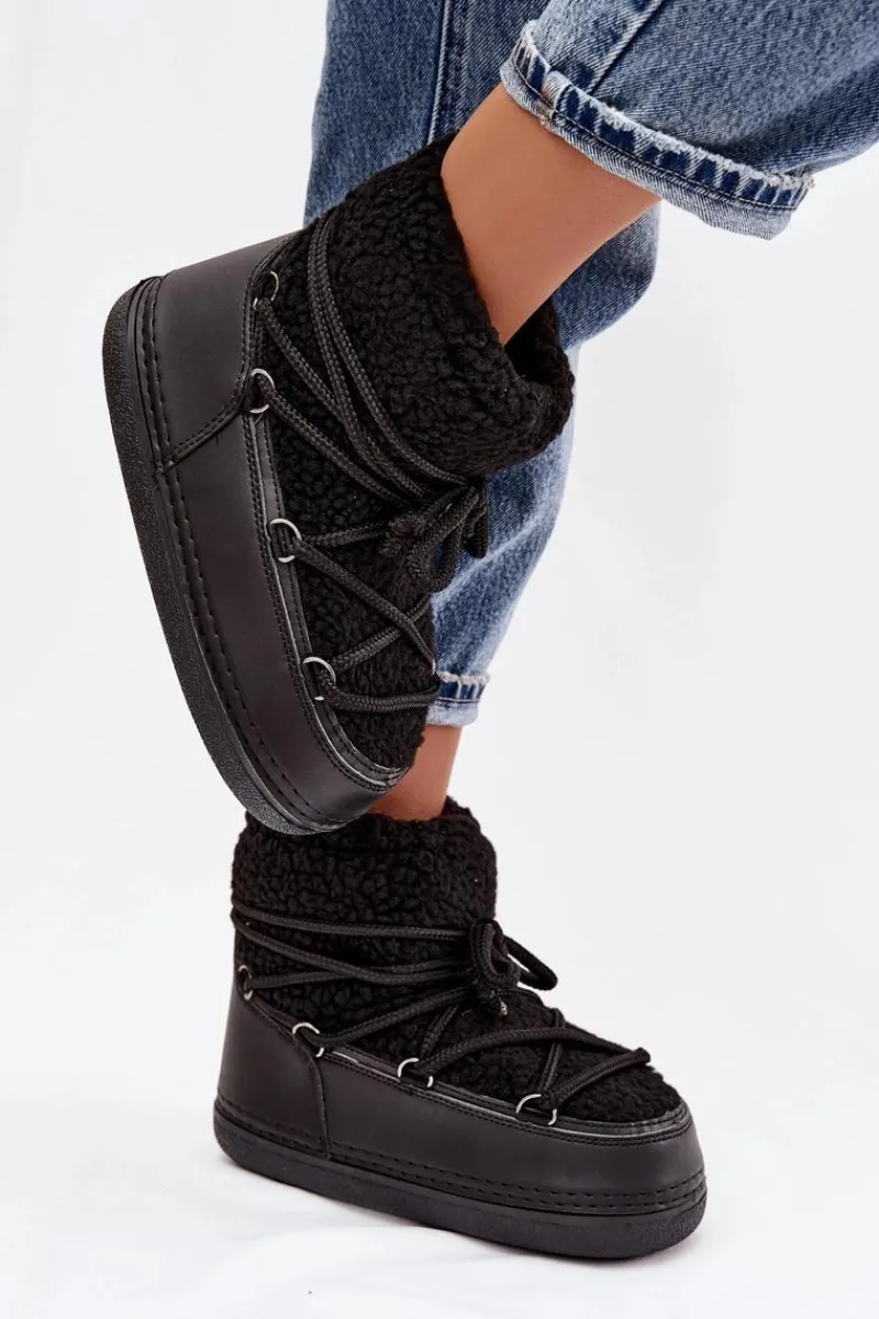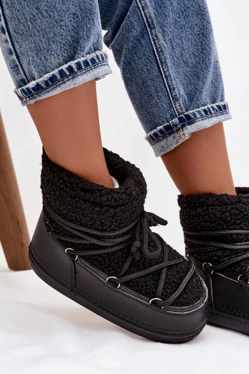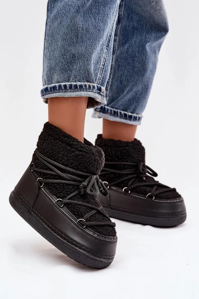 Śniegowce damskie z futerkiem typu baranek to doskonały wybór na zimowe dni. Miękkie i przytulne, zapewniają ciepło oraz wygodę dzięki ociepleniu grubą warstwą pianki pokrytą tkaniną, która skutecznie chroni przed chłodem. Model posiada wiązanie z przodu, które pozwala dopasować buty do stopy, a jednocześnie stanowi stylowy element ozdobny. Wykończenie futerkiem nadaje im modnego, zimowego charakteru. Te śniegowce idealnie sprawdzą się podczas codziennych spacerów czy zimowych wyjazdów, łącząc funkcjonalność z modnym wyglądem.