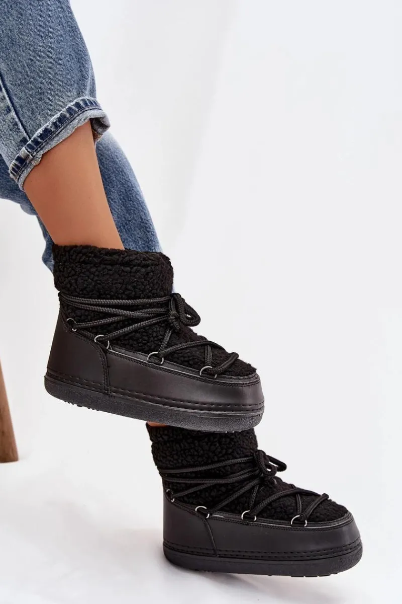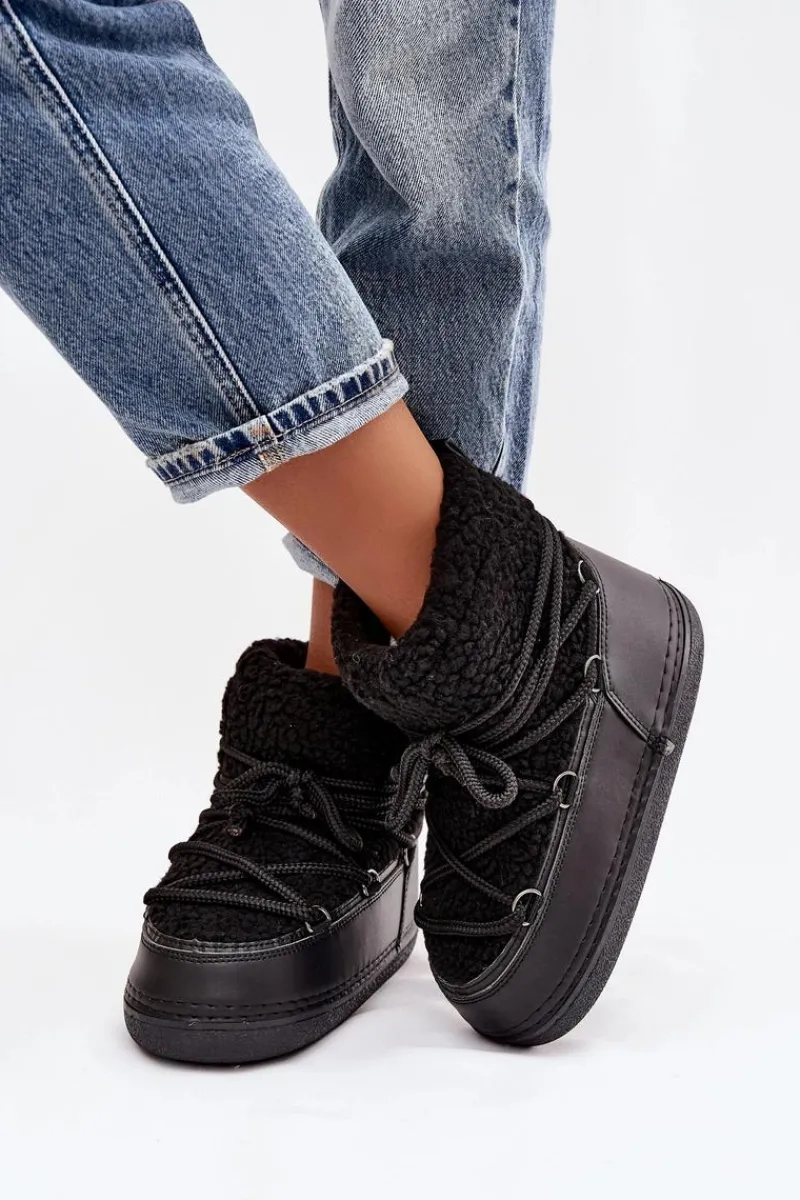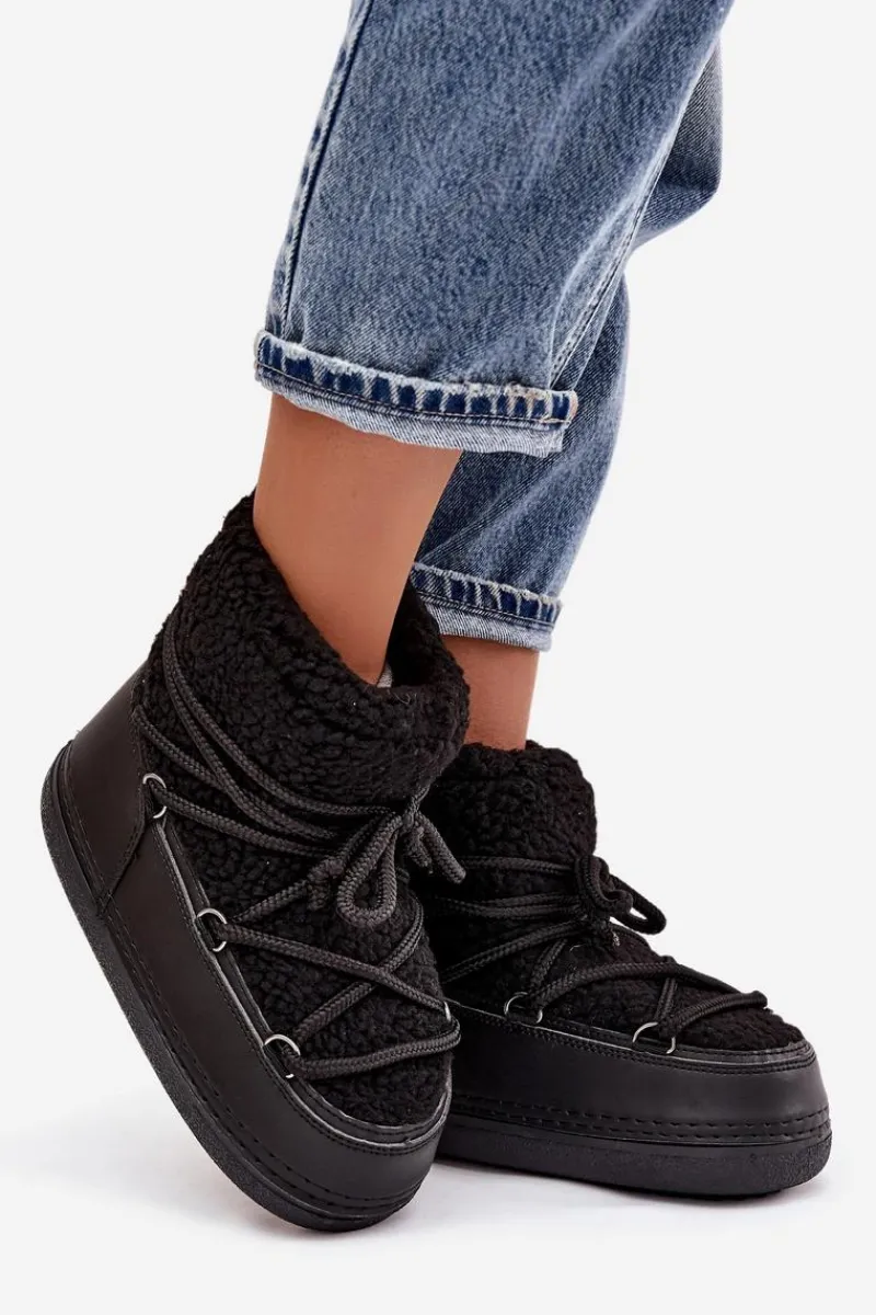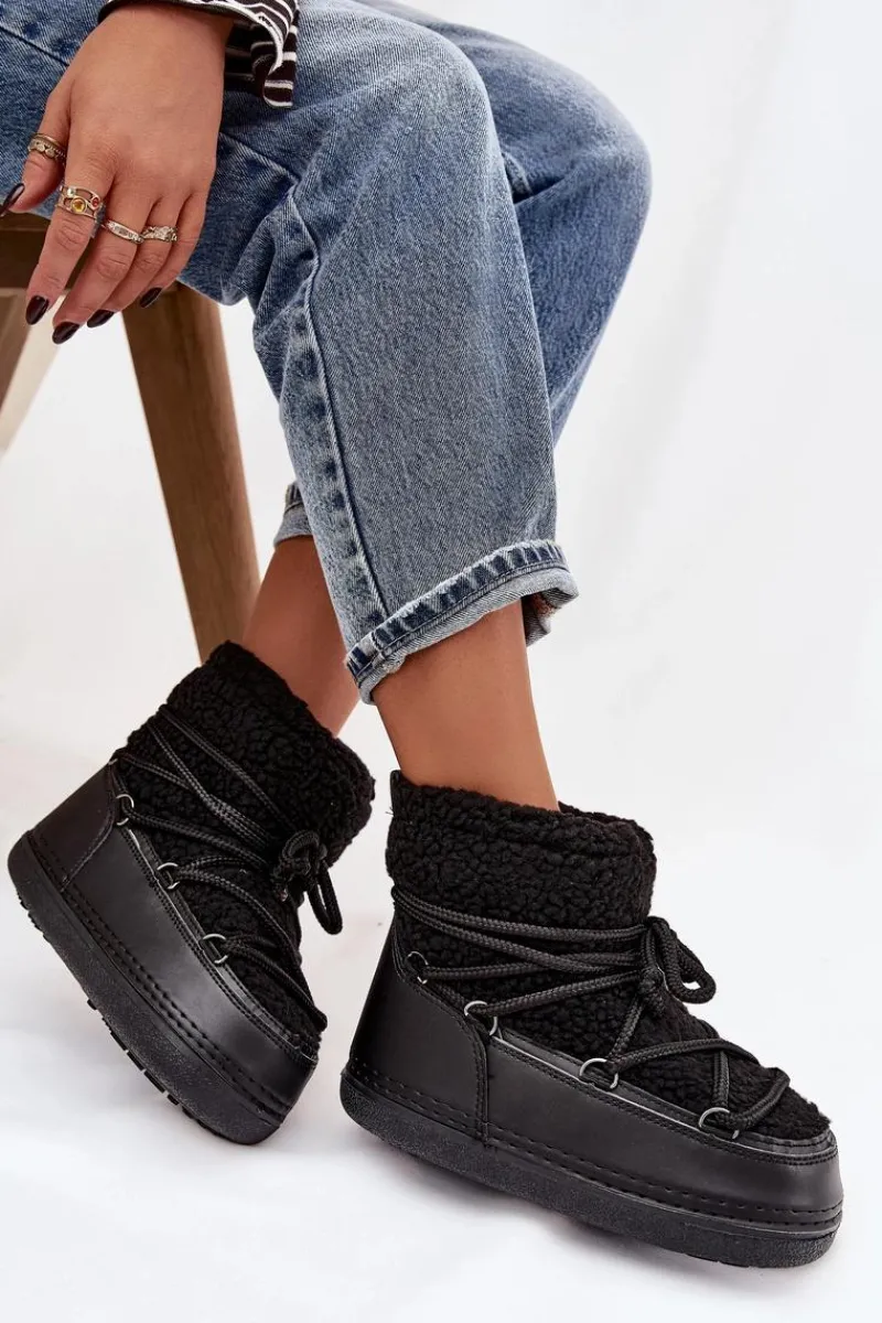 Śniegowce damskie z futerkiem typu baranek to doskonały wybór na zimowe dni. Miękkie i przytulne, zapewniają ciepło oraz wygodę dzięki ociepleniu grubą warstwą pianki pokrytą tkaniną, która skutecznie chroni przed chłodem. Model posiada wiązanie z przodu, które pozwala dopasować buty do stopy, a jednocześnie stanowi stylowy element ozdobny. Wykończenie futerkiem nadaje im modnego, zimowego charakteru. Te śniegowce idealnie sprawdzą się podczas codziennych spacerów czy zimowych wyjazdów, łącząc funkcjonalność z modnym wyglądem.
