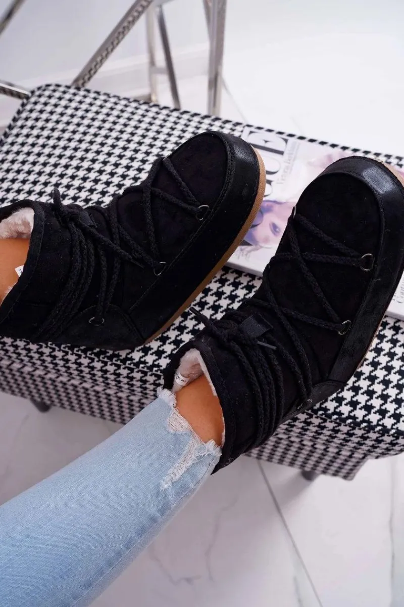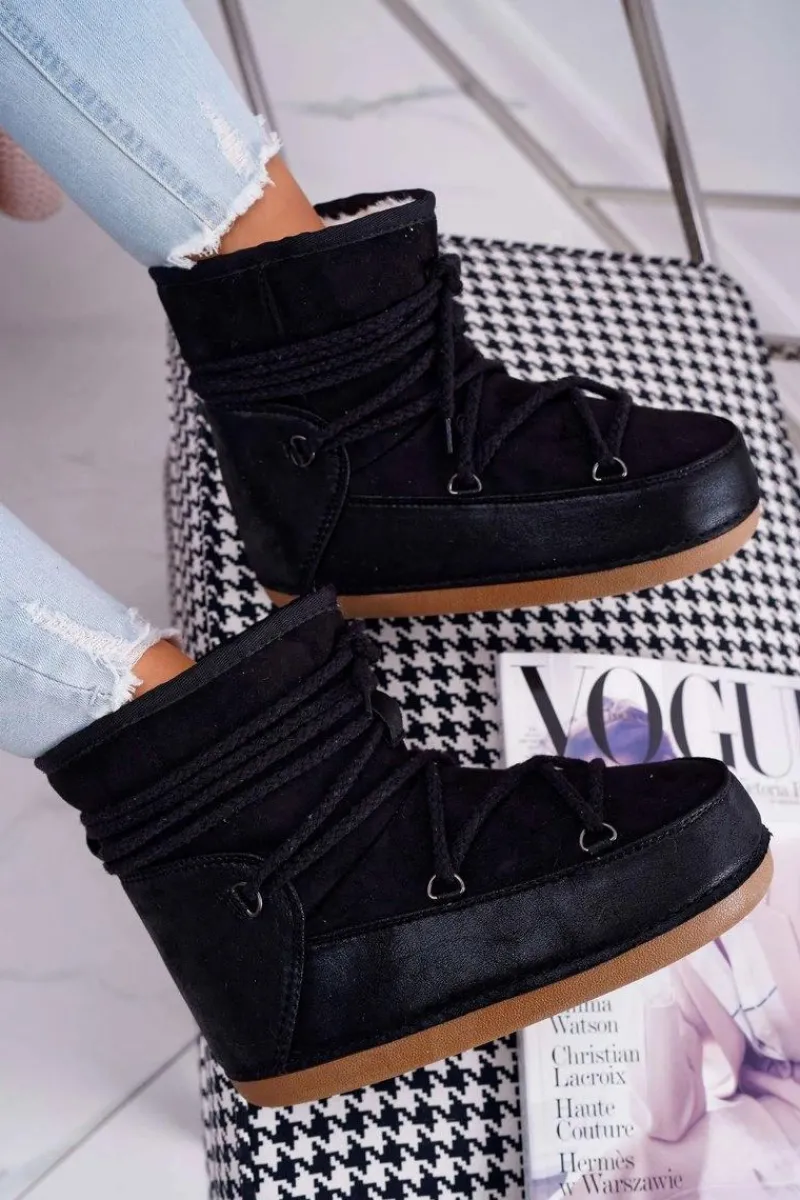 Śniegowce Damskie>Boto Damskie Botki Śniegowce Ocieplane Futerkiem Czarne Veme