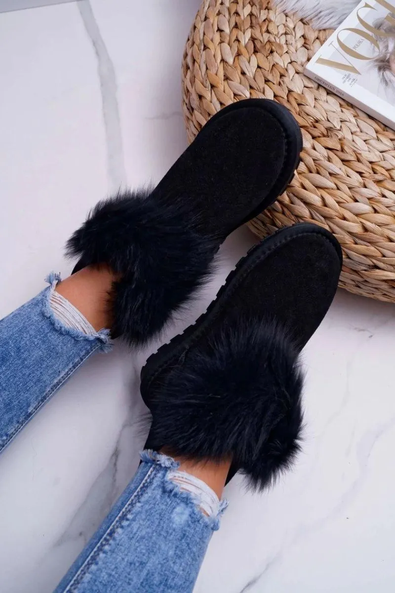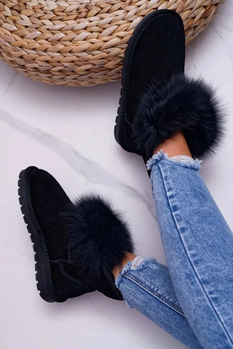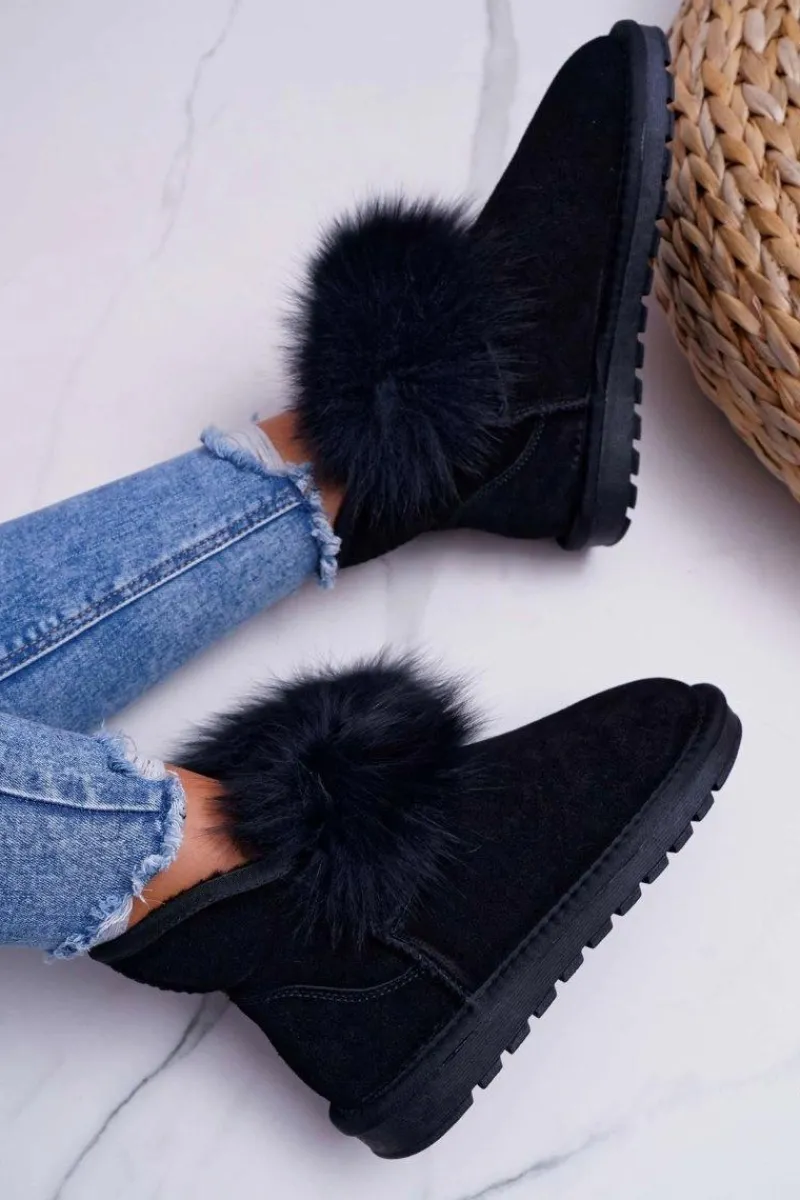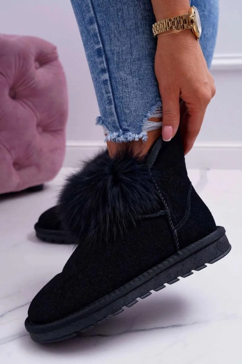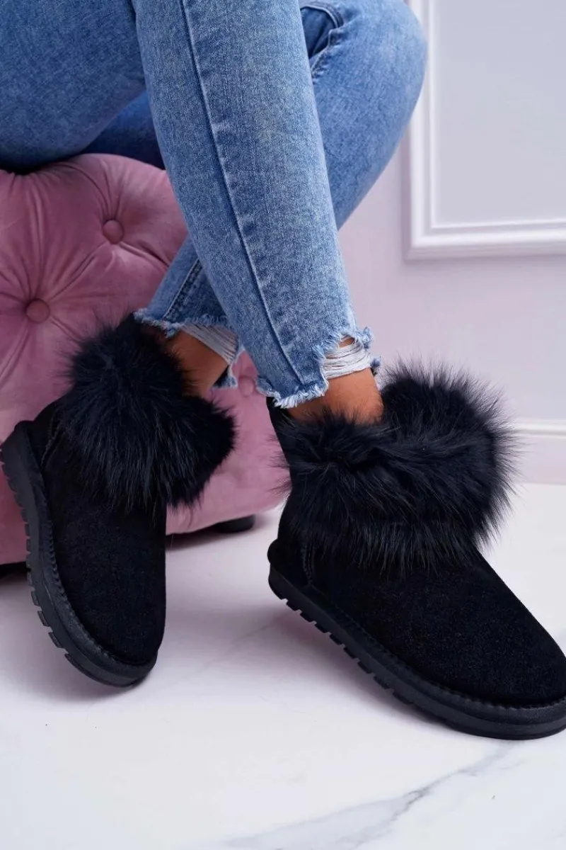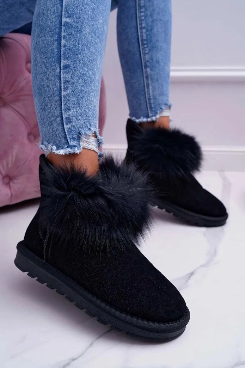 Śniegowce Damskie>Boto Damskie Botki Śniegowce Ocieplane Futerkiem Skóra Zamsz Czarne Memento