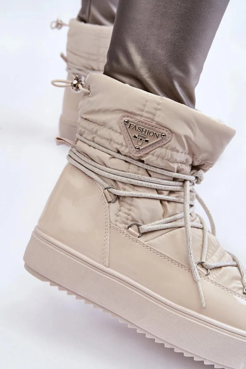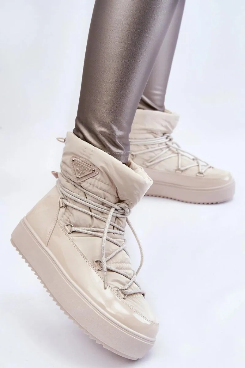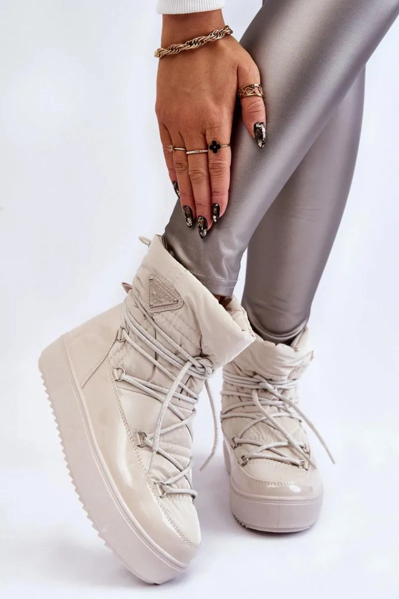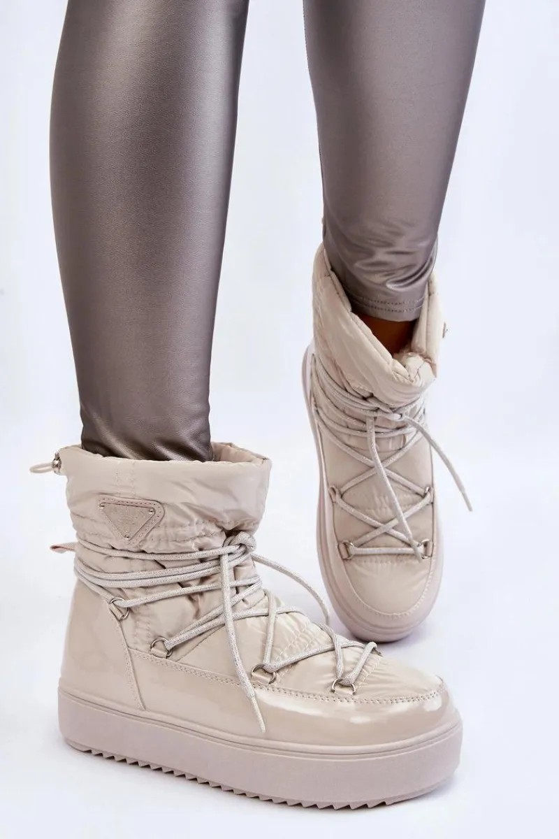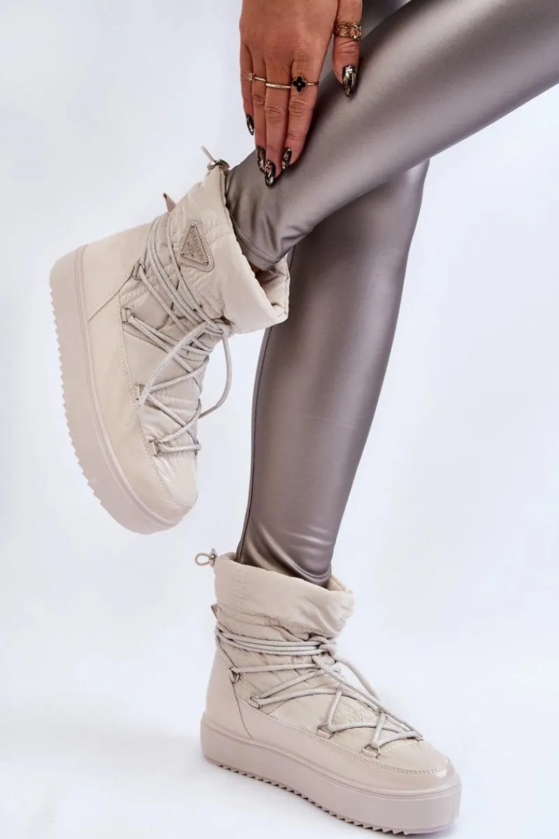 Damskie śniegowce zostały wykonane z materiałów odpornych na wiatr oraz mróz w połączeniu z eko skórą. Model wsuwany z dodatkowym sznurowaniem z przodu oraz ściągaczem u góry cholewki. Śniegowce zostały ocieplone miłym w dotyku futerkiem. Osadzone na platformie, która izoluje od zimnego i mokrego podłoża. Ten model powinien być właśnie Twój! Przy wyborze rozmiaru prosimy sugerować się tabelą rozmiarów.