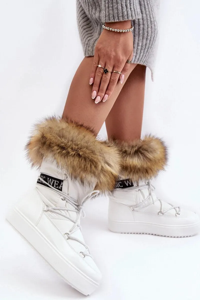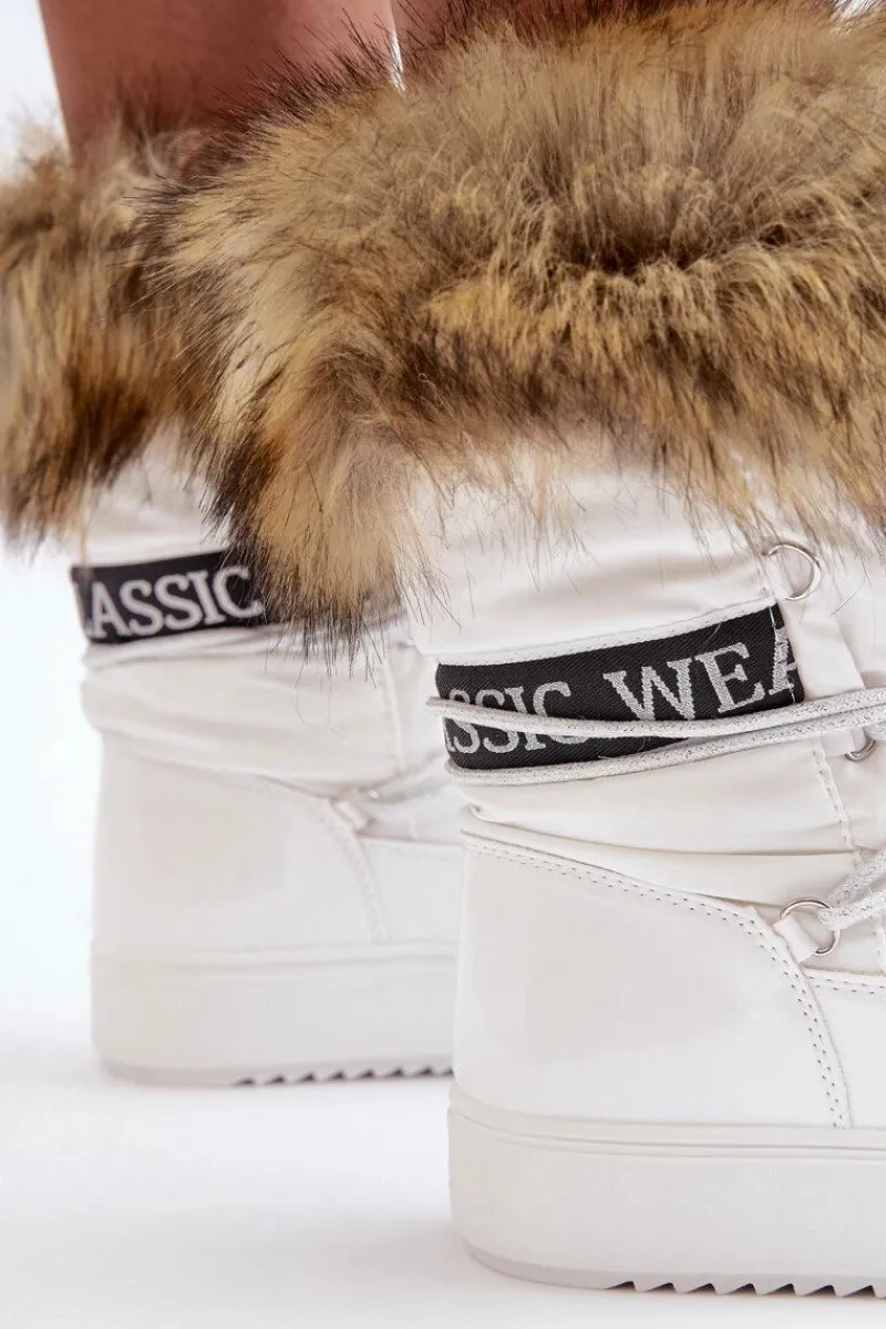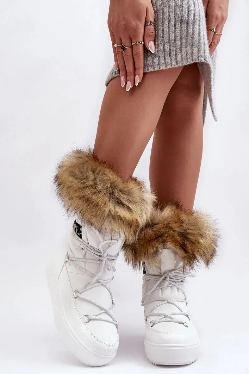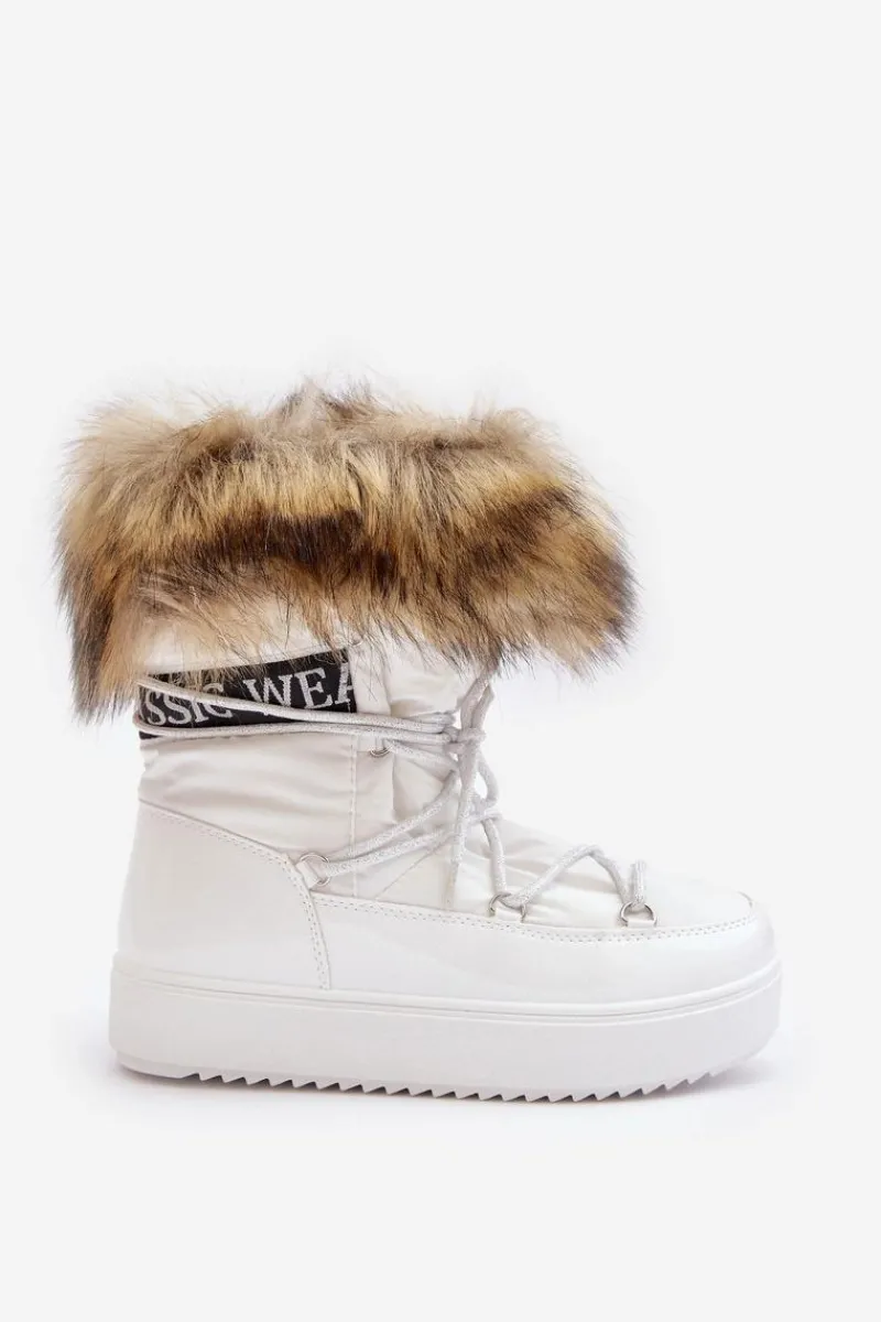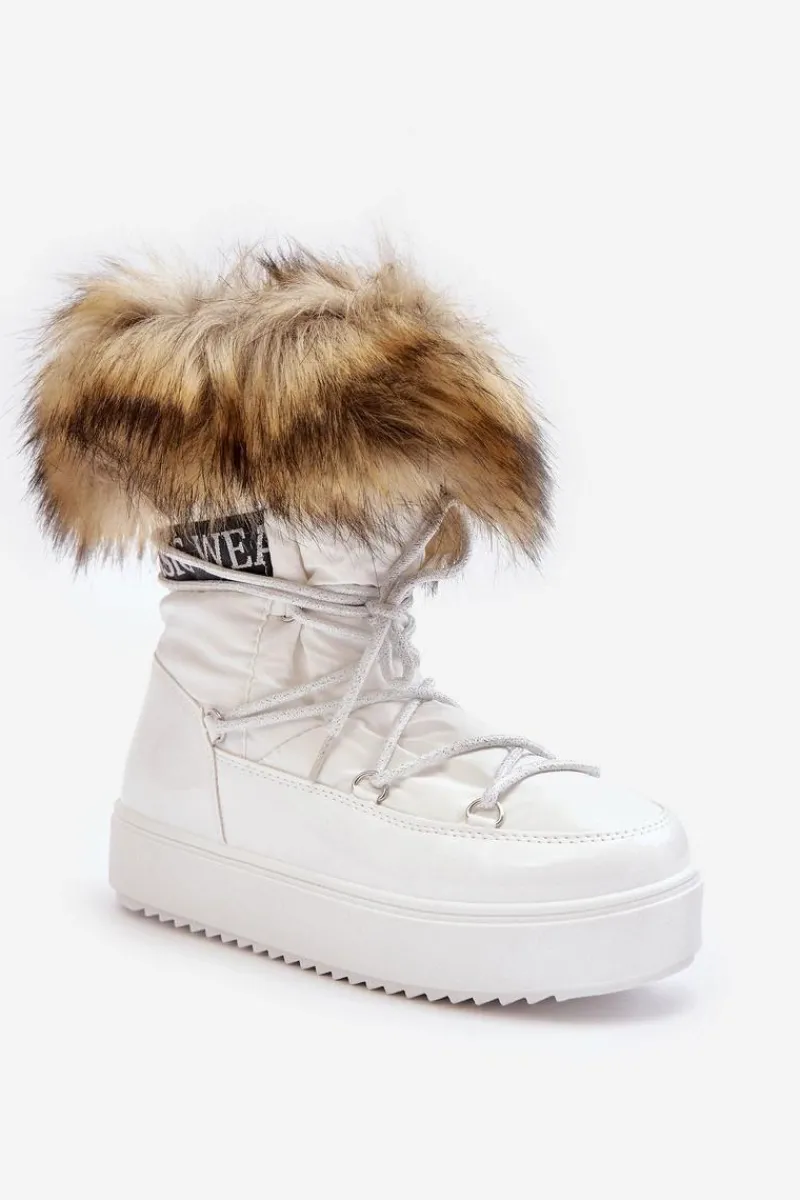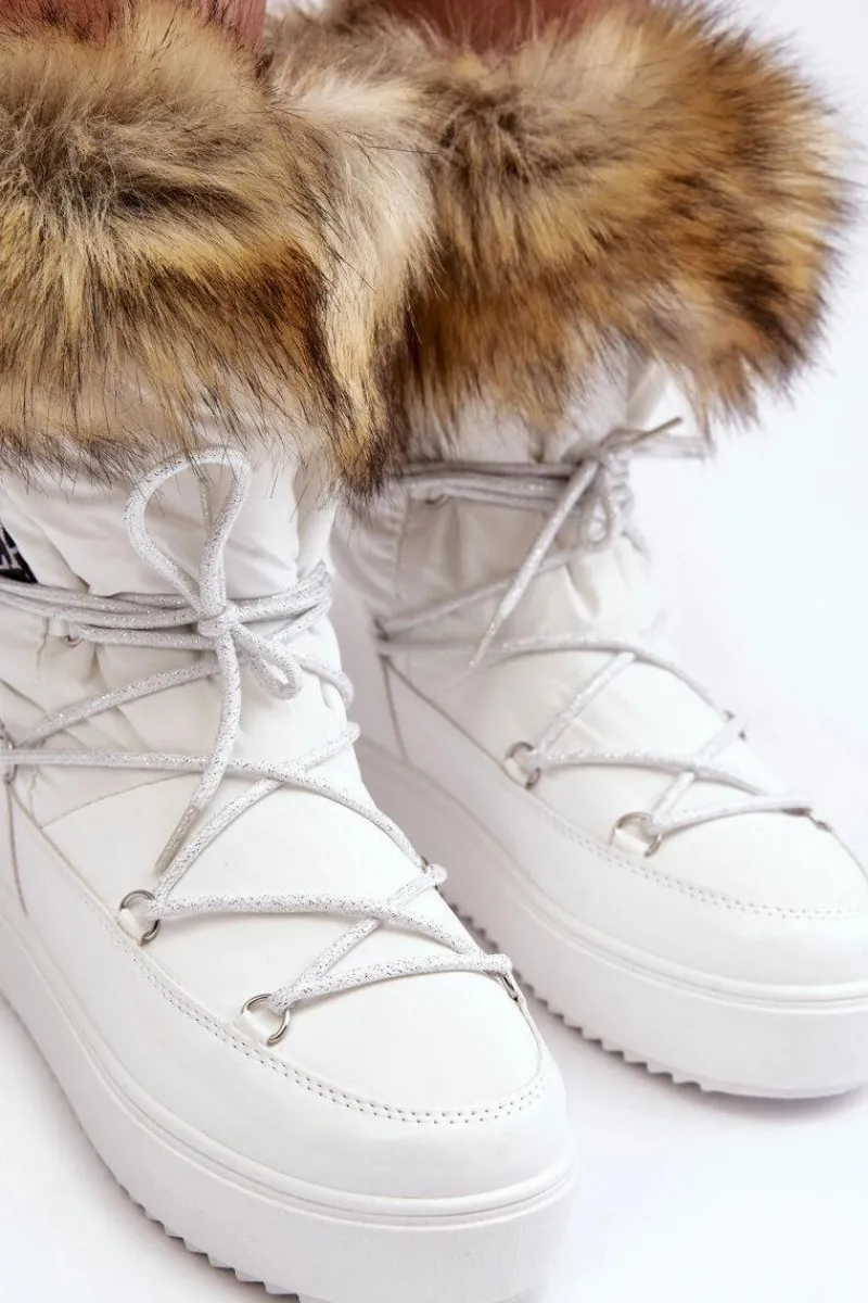Śniegowce Damskie>Boto Damskie Śniegowce Sznurowane Białe Santero Biały