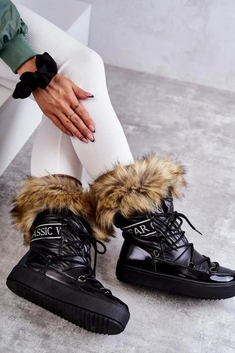 Modne śniegowce zostały wykonane z materiału odpornego na zimno i wiatr. Cholewka zakończona sztucznym futerkiem. Model klasycznie sznurowany. Śniegowce zostały osadzone na masywnej platformie. Posiadają w środku ocieplenie w postaci grubego futerka. Dekorowane tasiemką z nadrukiem. Niezwykle ciepłe, a zarazem stylowe. Powinnaś je mieć! Przy wyborze rozmiaru prosimy sugerować się tabelą rozmiarów.