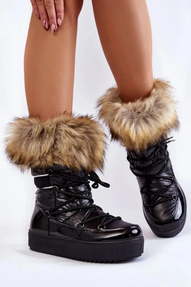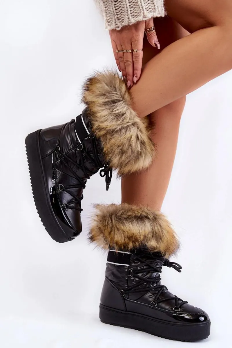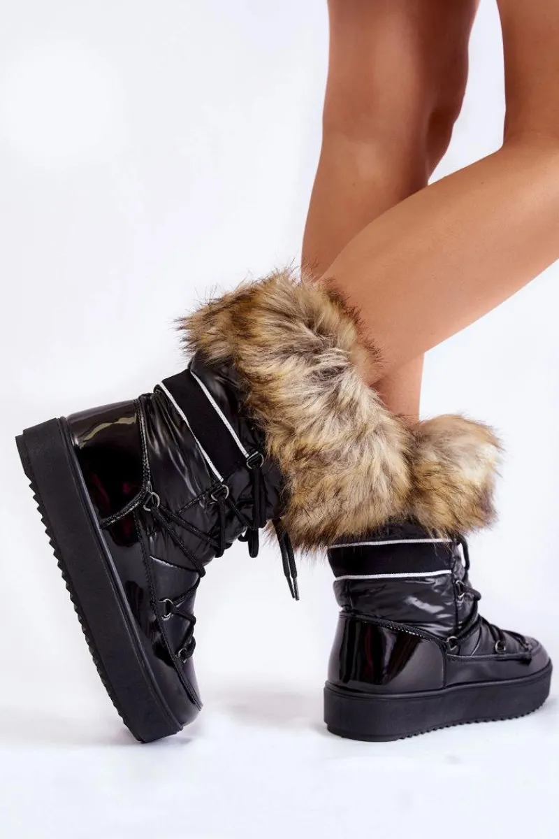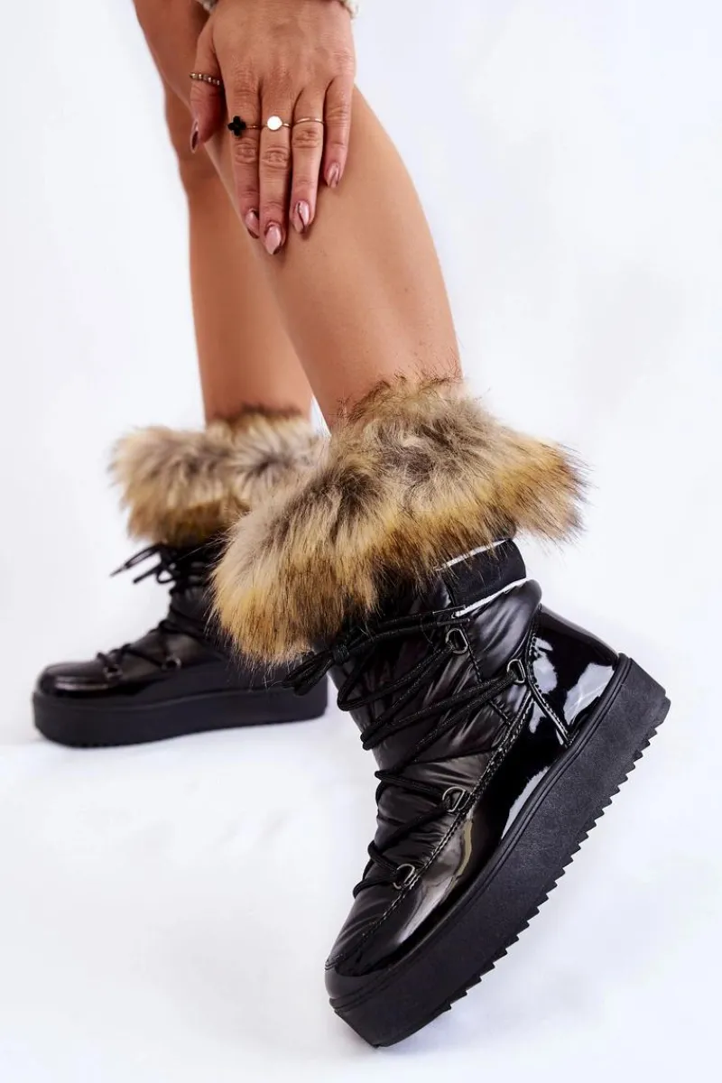 Damskie śniegowce zostały wykonane z materiałów odpornych na zimno i wiatr. Cholewka zakończona sztucznym futerkiem. Model klasycznie sznurowany. Śniegowce zostały osadzone na masywnej platformie. Posiadają w środku ocieplenie w postaci grubego futerka. Dekorowane gładką tasiemką. Niezwykle ciepłe, a zarazem stylowe. Powinnaś je mieć! Przy wyborze rozmiaru prosimy sugerować się tabelą rozmiarów.