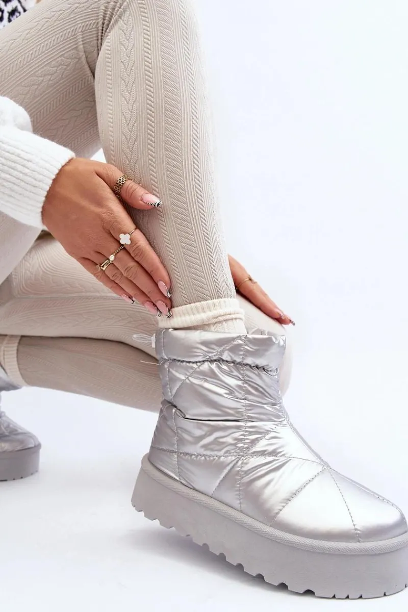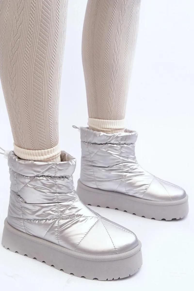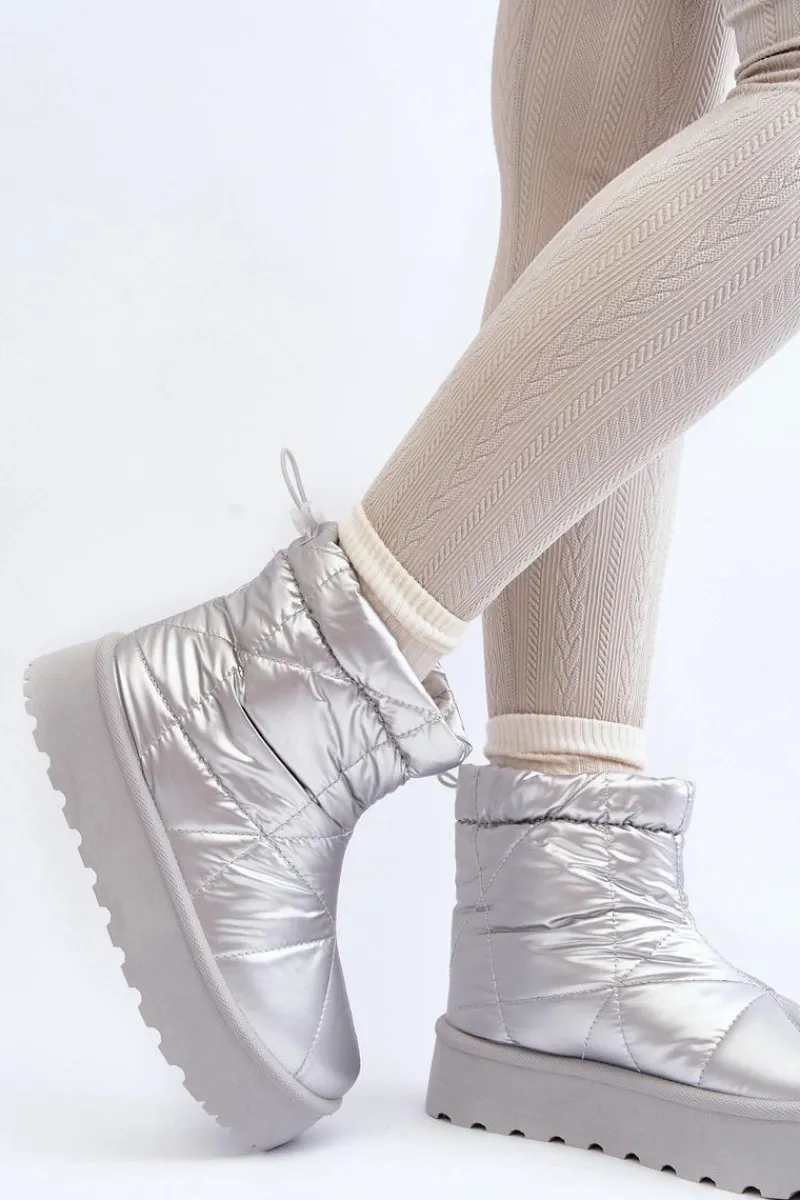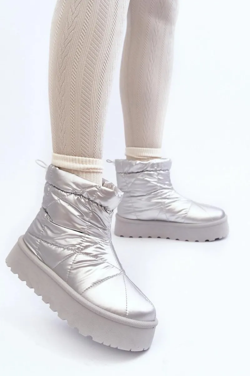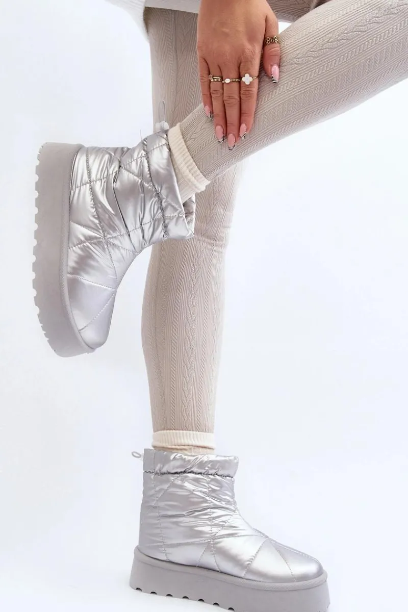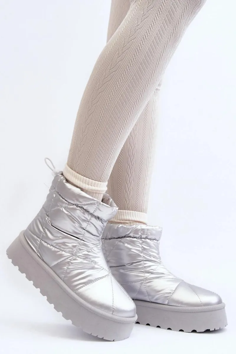 Śniegowce damskie wykonane z materiałów, które skutecznie chronią przed zimnem. Osadzone na masywnej platformie z gumowego tworzywa. Cholewka ozdobiona licznymi przeszyciami. Model wsuwany. Noski zaokrąglone. Środek ocieplony grubym futerkiem. Na górze cholewki ściągacz. Dodatkowo zapiętek jest usztywniony. Koniecznie powinnaś je mieć! Przy wyborze rozmiaru prosimy sugerować się tabelą rozmiarów.