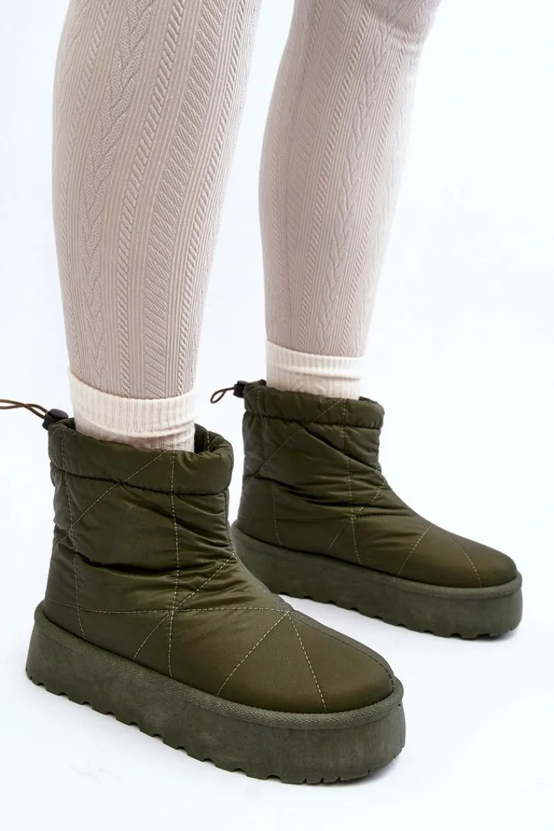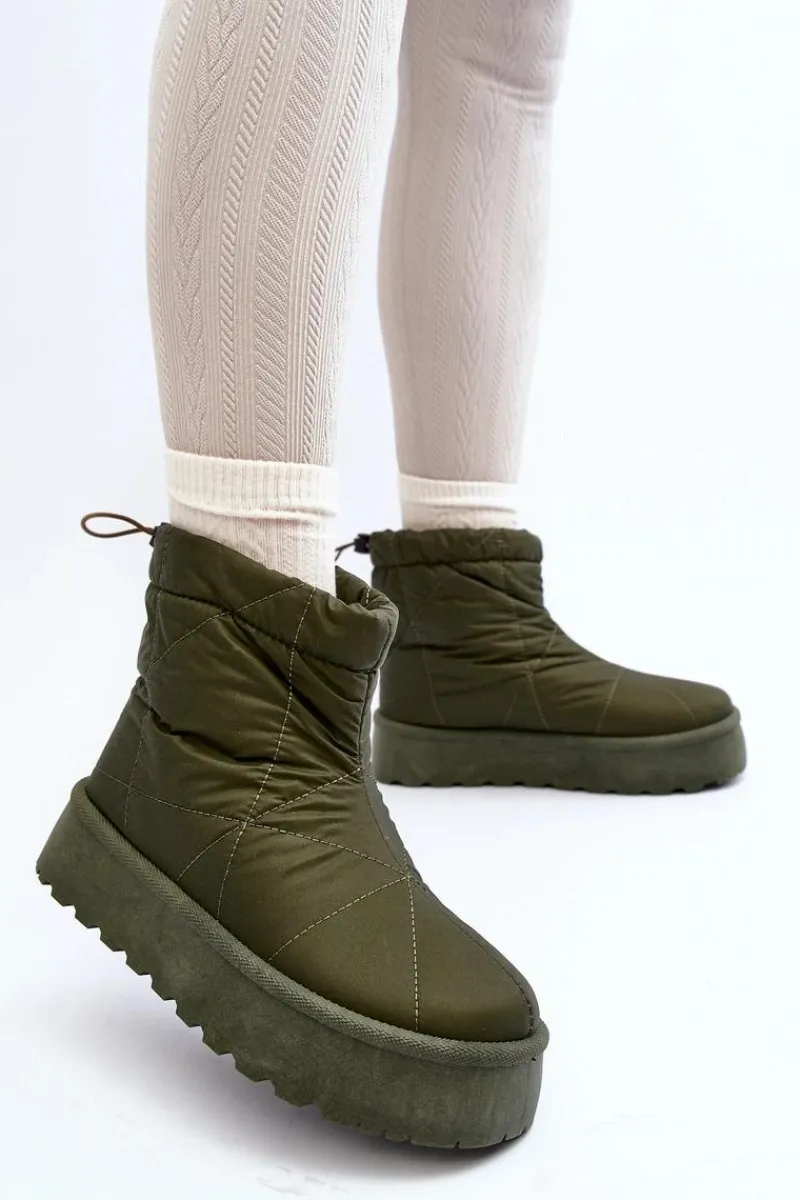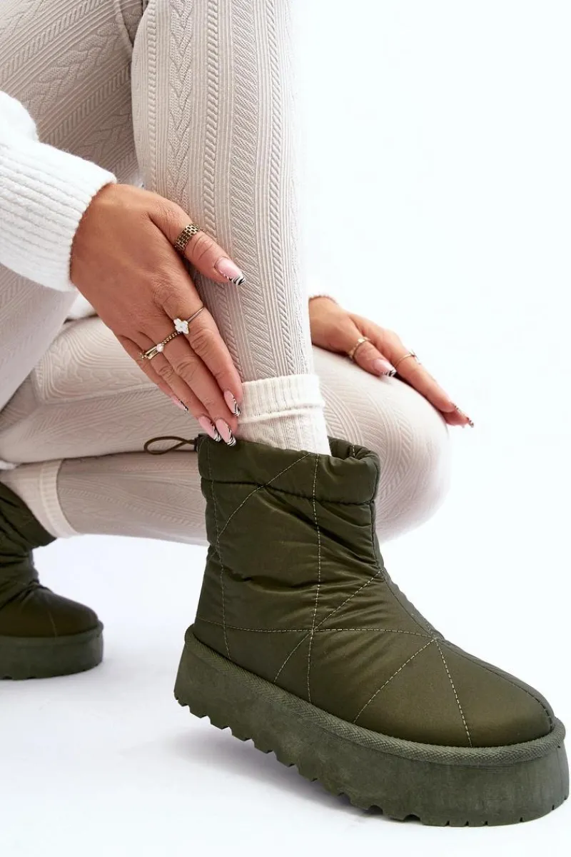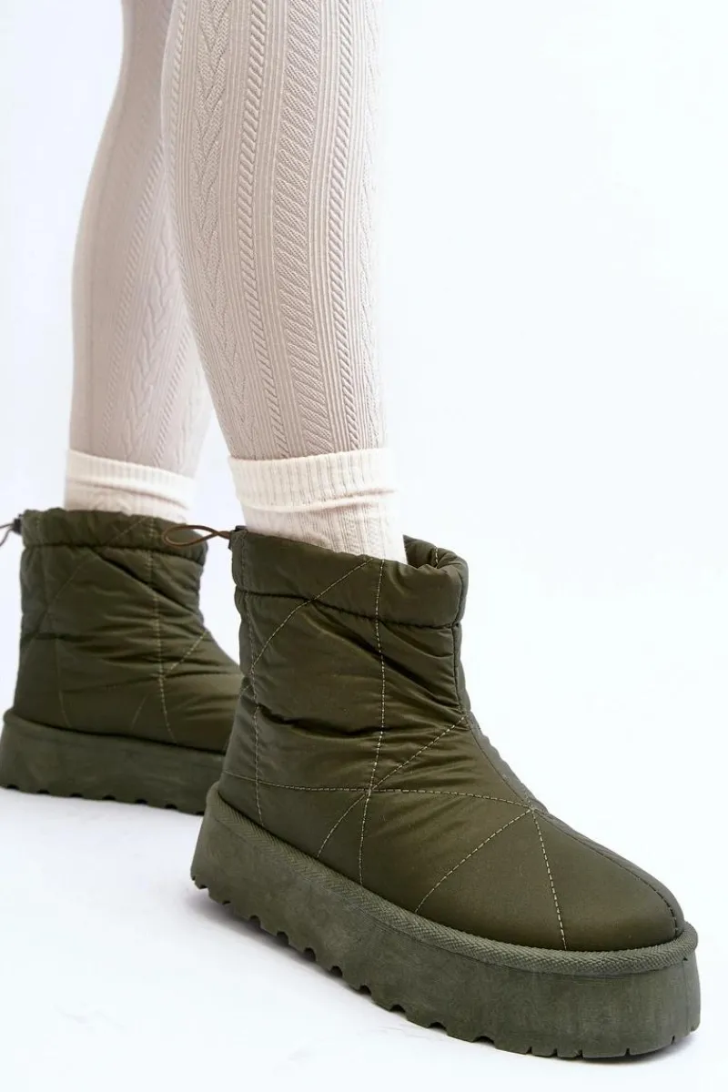 Śniegowce Damskie>Boto Śniegowce Damskie Na Masywnej Platformie Zielone Fionia