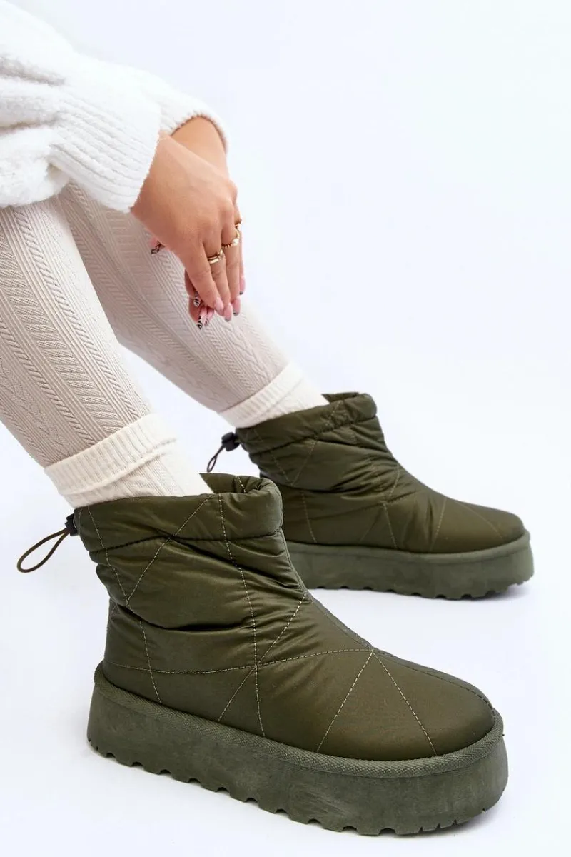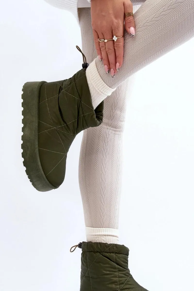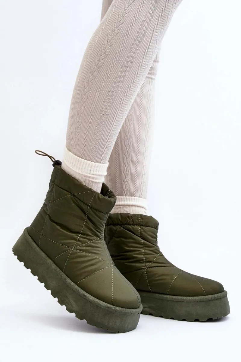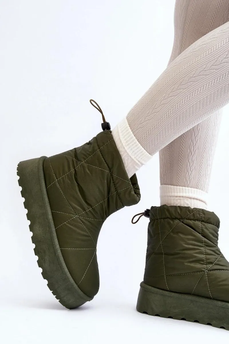 Śniegowce Damskie>Boto Śniegowce Damskie Na Masywnej Platformie Zielone Fionia