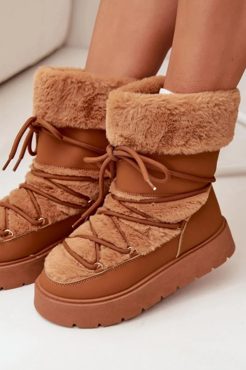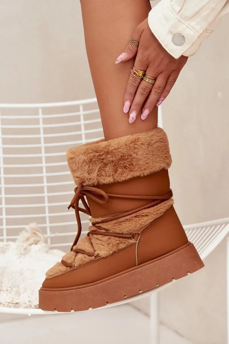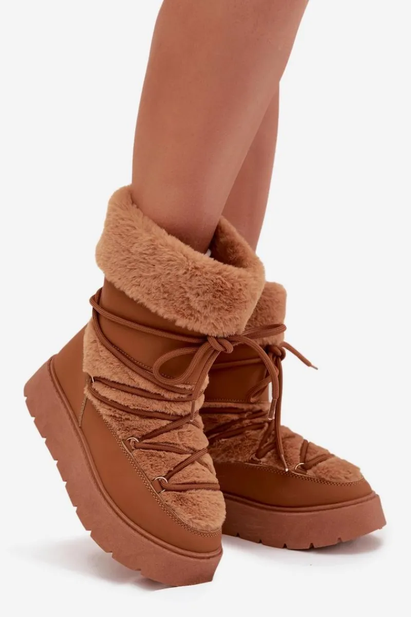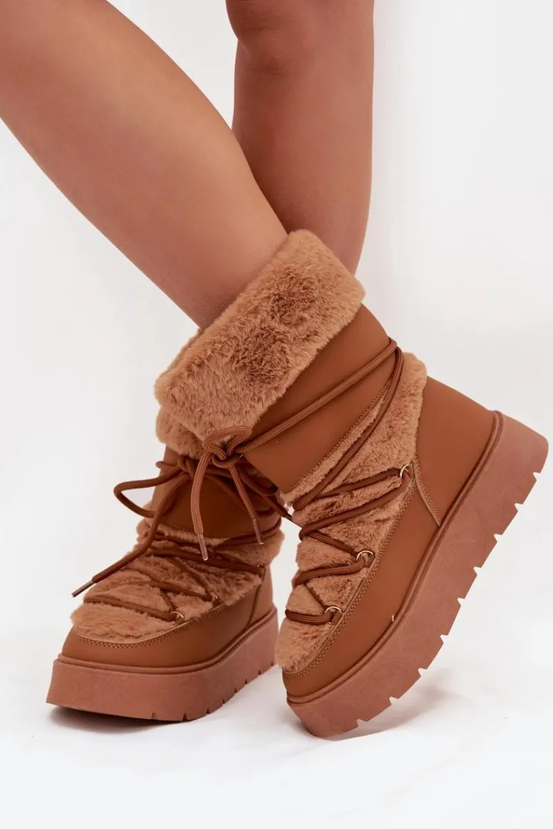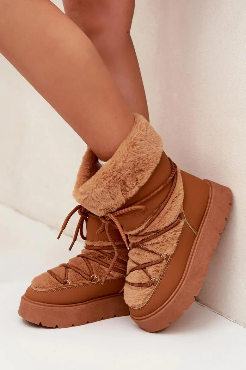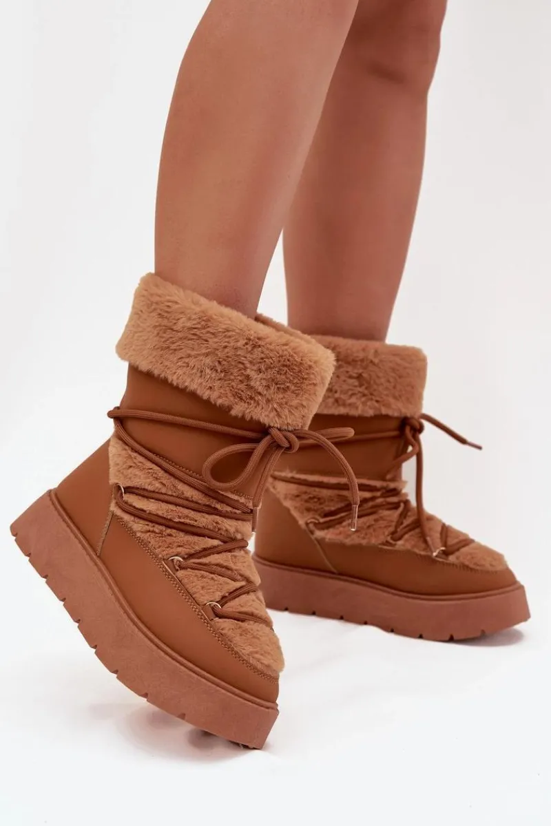 Śniegowce damskie na platformie to połączenie mody i funkcjonalności na zimowe dni. Wykonane z eko skóry. Ciepłe futerko zarówno na zewnątrz, jak i wewnątrz butów, gwarantuje komfort i ciepło nawet w najchłodniejsze dni. Wiązanie pozwala na lepsze dopasowanie. Idealne na zimowe wypady, łączą stylowy wygląd z wygodą i ochroną przed zimnem. Przy wyborze rozmiaru prosimy sugerować się tabelą rozmiarów.