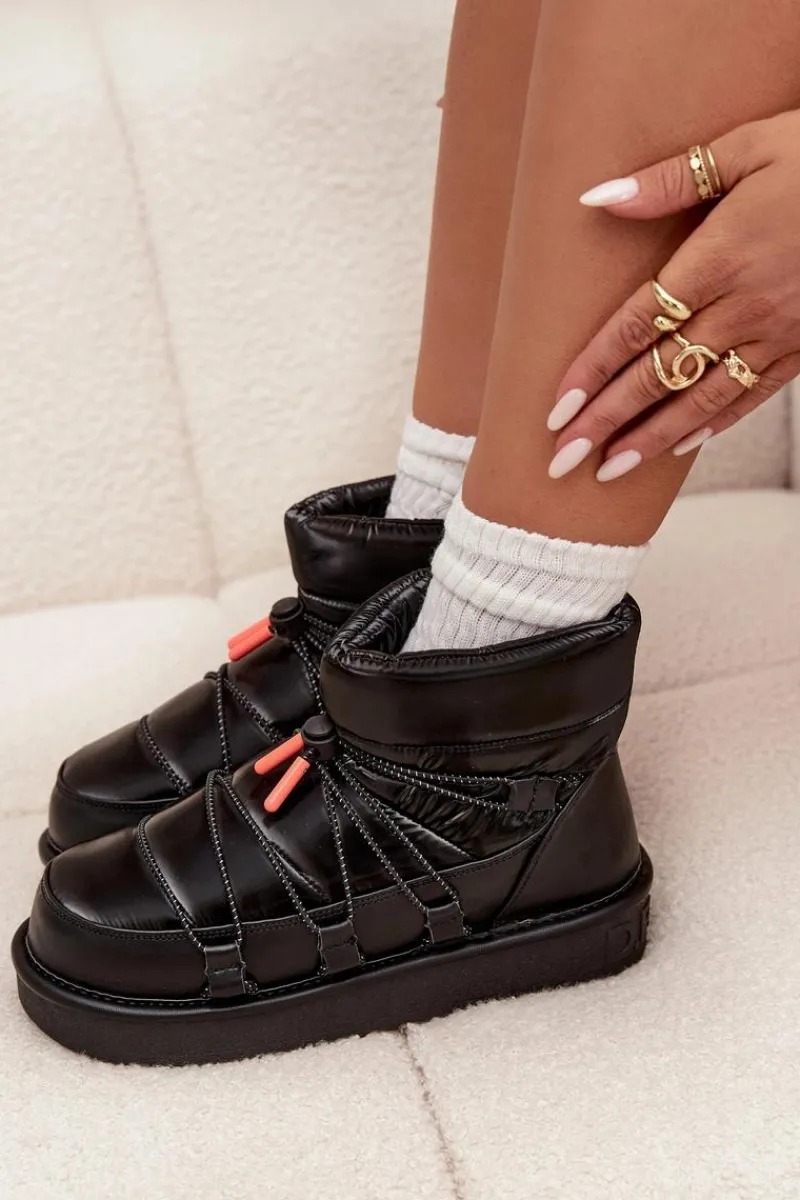 Śniegowce damskie marki D.Franklin. Wykonane z wytrzymałego nylonu i eko skóry, skutecznie chronią przed chłodem i wilgocią, jednocześnie prezentując się modnie i stylowo. Wnętrze ocieplane miękkim futerkiem zapewnia komfort termiczny i wygodę nawet podczas mroźnej pogody. Model osadzony został na podeszwie z gumowego tworzywa, która gwarantuje stabilność i przyczepność na różnych nawierzchniach. Dodatkowym atutem jest ściągacz z przodu, który umożliwia lepsze dopasowanie i chroni przed przedostawaniem się zimna do wnętrza obuwia. To śniegowce, które sprawdzą się zarówno na co dzień, jak i podczas zimowych wyjazdów.