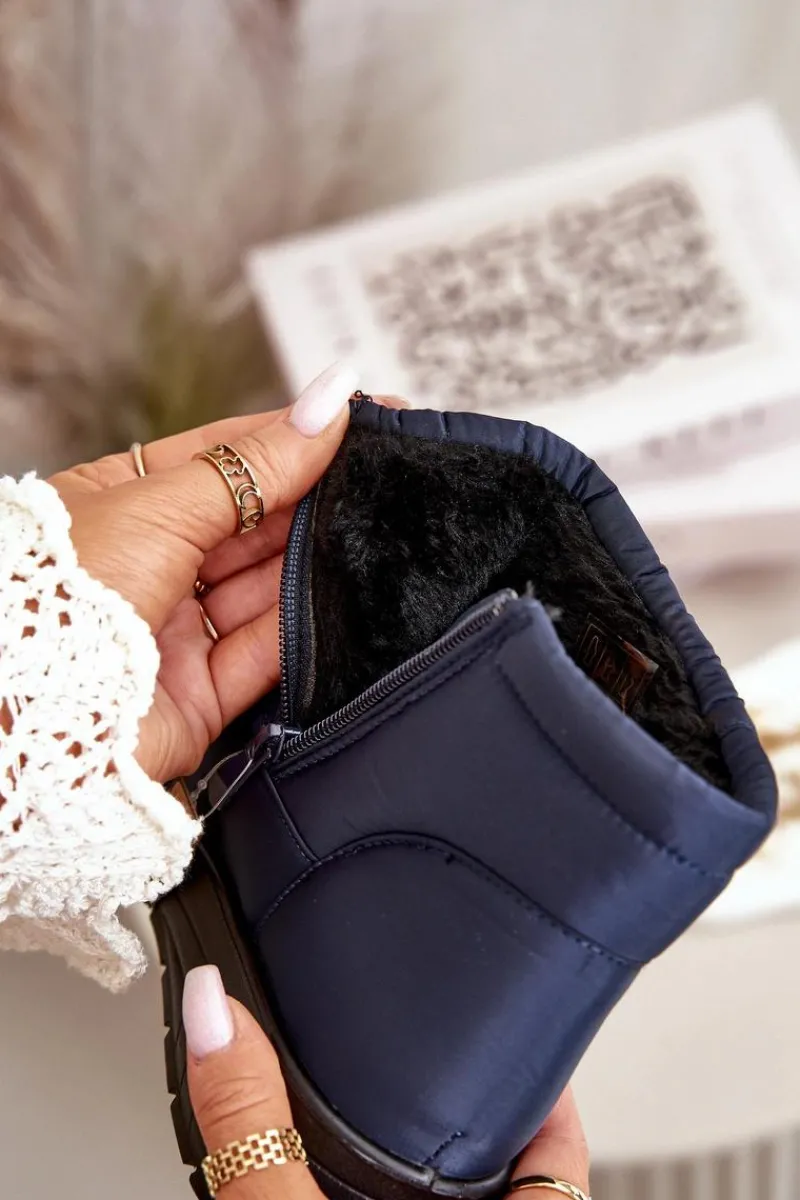 Klasyczne śniegowce damskie zostały wykonane z materiałów odpornych na deszcz, mróz i wiatr. Posiadają ocieplenie w postaci grubego futerka. Śniegowce osadzono na platformie. Model ten zapinany jest na suwak z boku cholewki. Dodatkowo zapiętek jest usztywniany. Idealny model na jesienno-zimowy sezon! Przy wyborze rozmiaru prosimy sugerować się tabelą rozmiarów.