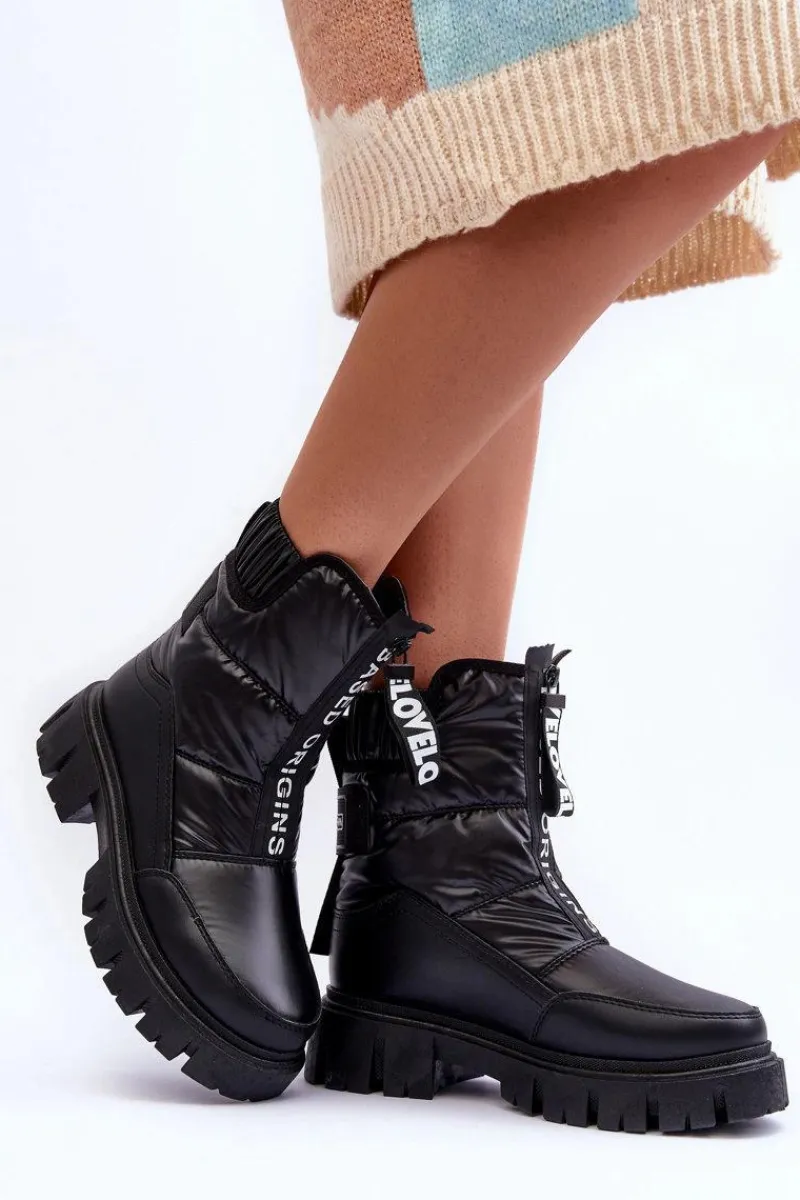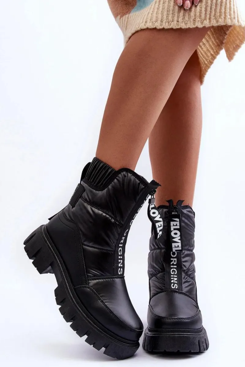 Modne, damskie śniegowce zostały wykonane z materiałów odpornych na wiatr czy mróz. Osadzone na płaskim obcasie i platformie. Model ten zapinany jest na suwak z przodu. Grube ocieplenie w postaci futerka zapewni ochronę przed zimnem. Przy wyborze rozmiaru prosimy sugerować się tabelą rozmiarów.
