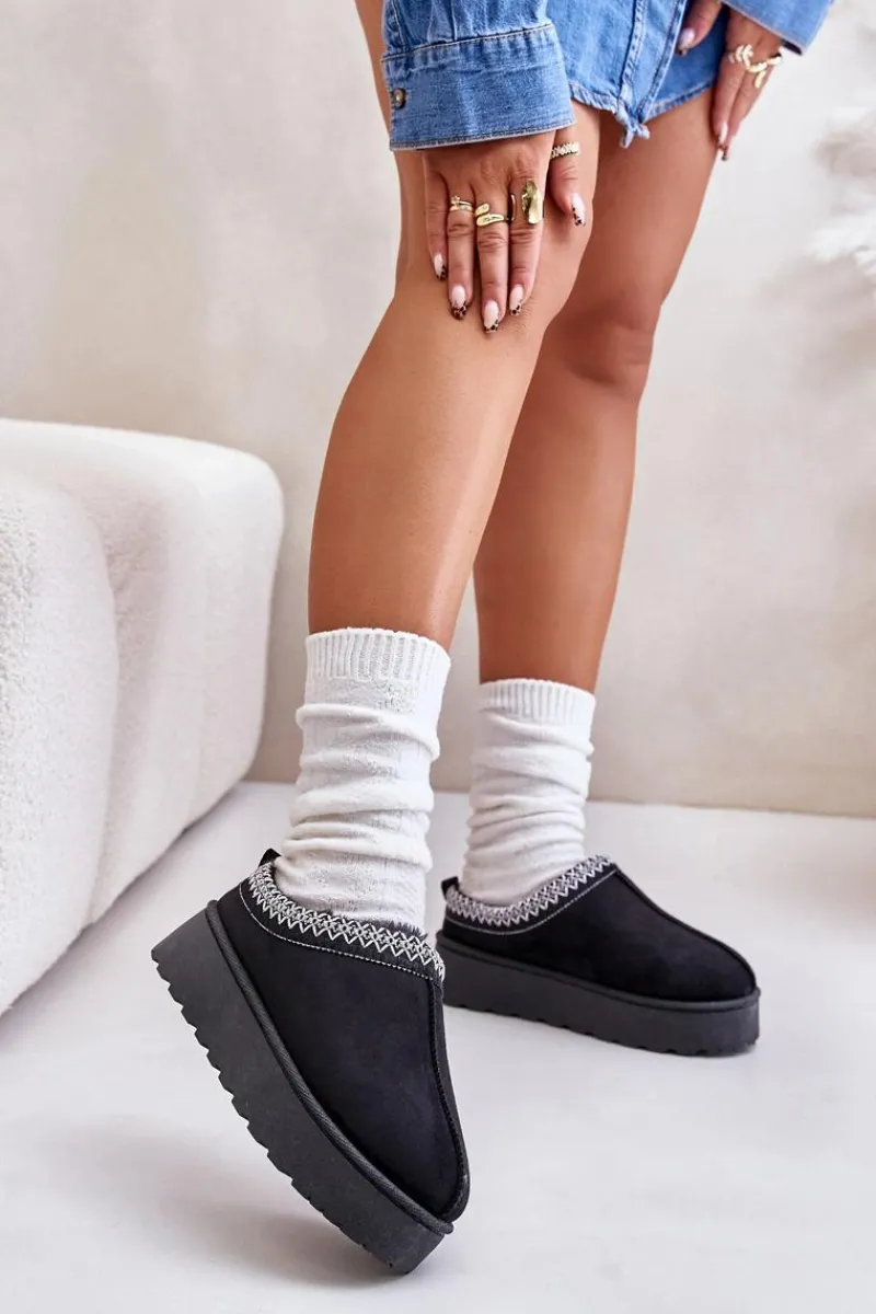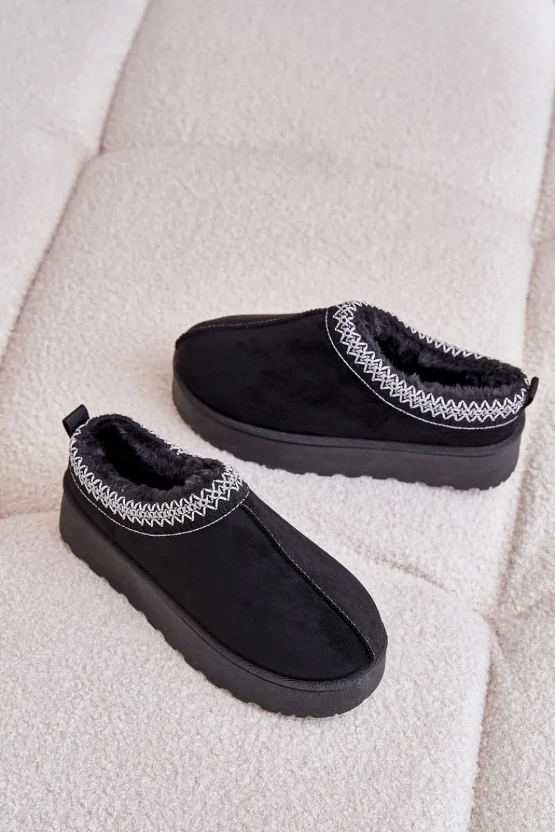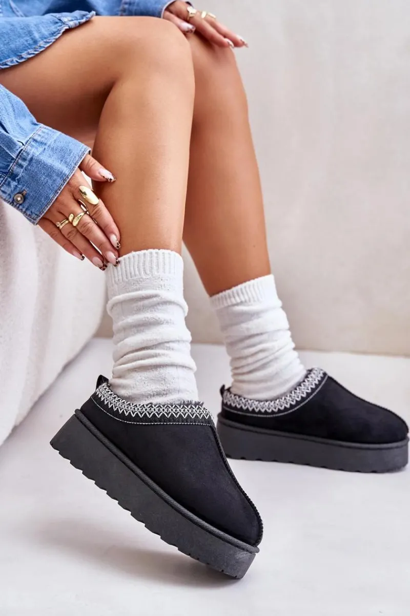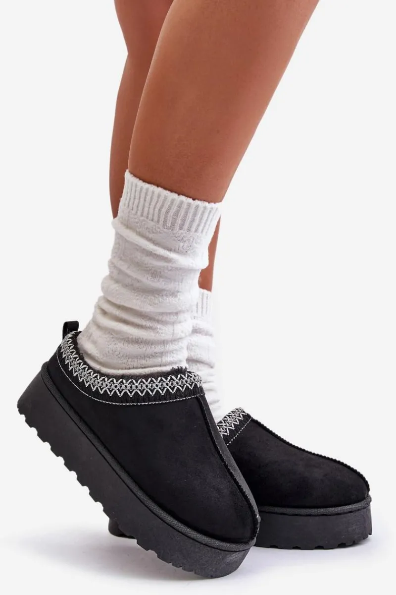 Damskie śniegowce z ozdobną lamówką. Wykonane z eko zamszu, to idealny wybór na chłodniejsze dni. Osadzone na platformie, zapewniają nie tylko styl, ale także komfort i izolację od zimna. Wnętrze butów jest ocieplone miękkim futerkiem, co gwarantuje ciepło i wygodę podczas noszenia. Te śniegowce to połączenie funkcjonalności i modnego wyglądu, doskonałe na zimowe spacery. Przy wyborze rozmiaru prosimy kierować tabelą rozmiarów.