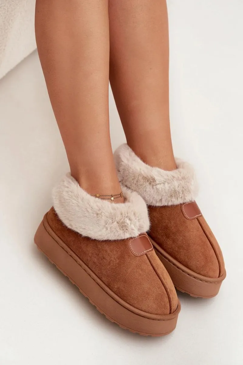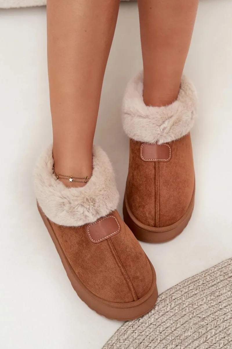 Śniegowce damskie z eko zamszu to wygodne i stylowe obuwie na chłodniejsze dni. Osadzone na praktycznej platformie skutecznie izolują od podłoża, a miękkie futerko zdobiące górę oraz wnętrze buta zapewnia ciepło i przyjemny komfort noszenia. To uniwersalny model, który doskonale sprawdzi się zarówno w domu, jak i podczas szybkich, codziennych wyjść.
