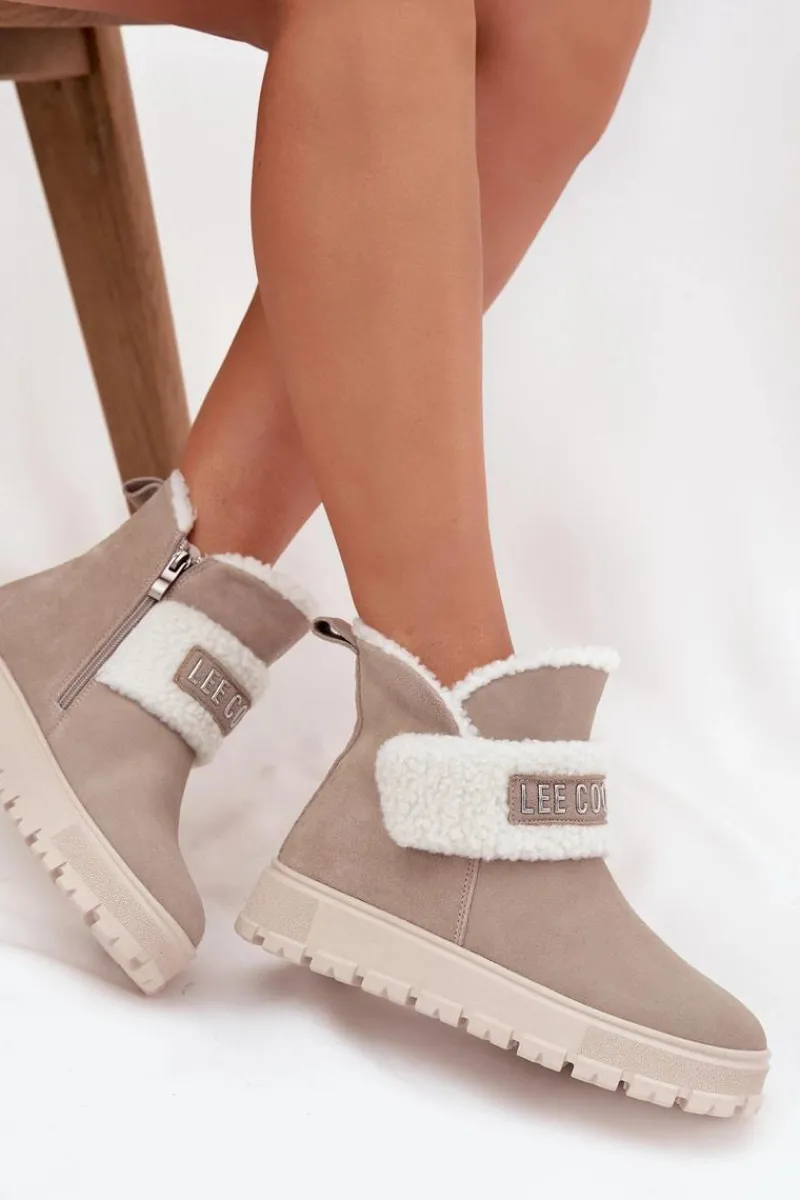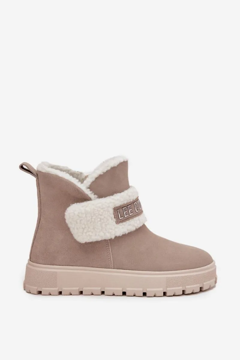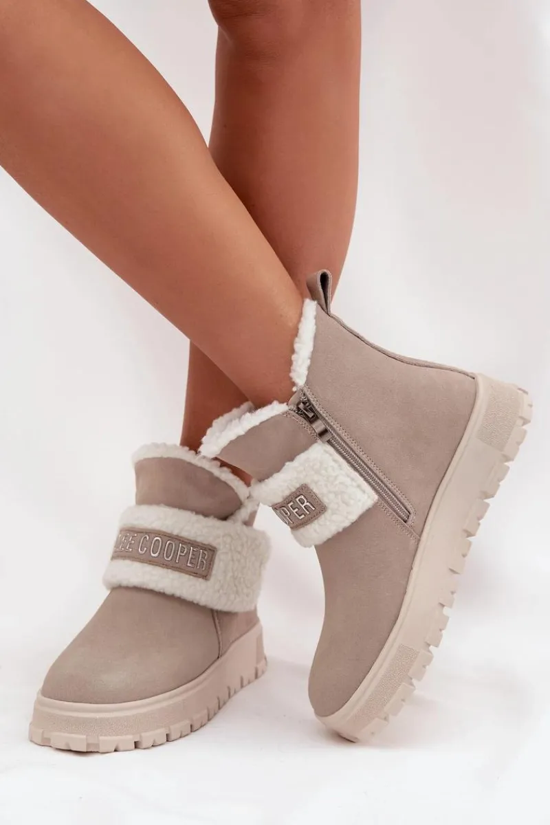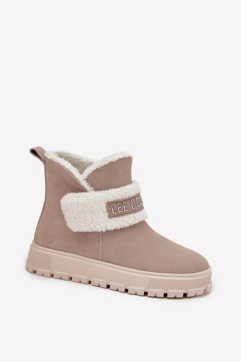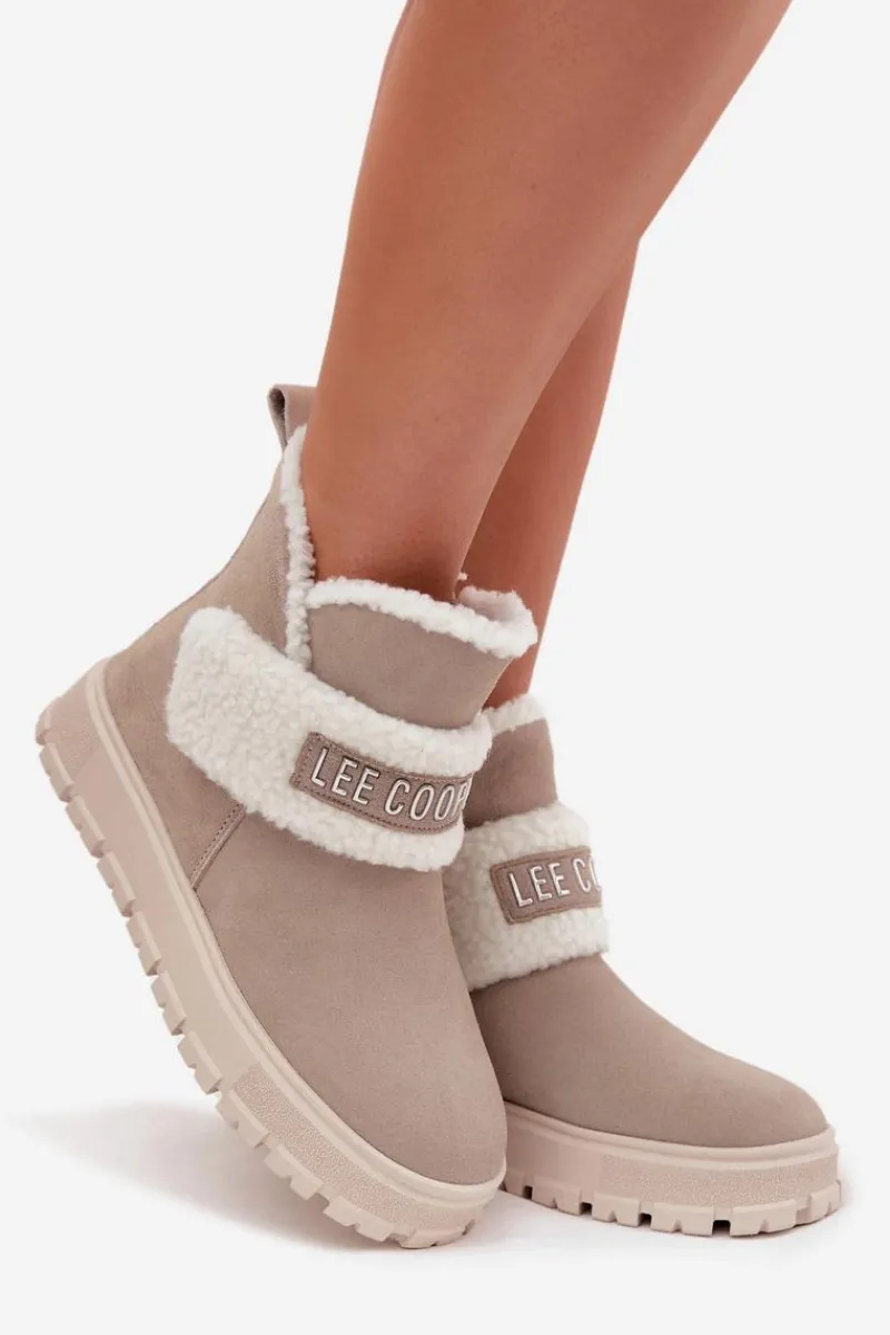 Śniegowce damskie marki Lee Cooper. Wykonane z naturalnego zamszu, prezentują się stylowo i zapewniają trwałość na wiele sezonów. Model został osadzony na podeszwie z gumowego tworzywa, która gwarantuje stabilność i dobrą przyczepność do podłoża. Wnętrze butów ocieplone jest syntetycznym kożuszkiem, który zapewnia ciepło i komfort nawet w mroźne dni. Z przodu znajduje się ozdobny pasek, dodający całości modnego akcentu. Buty zapinane są na zamek, co ułatwia ich zakładanie i zdejmowanie. To doskonały wybór dla kobiet, które cenią stylowy wygląd i wygodę w jednym – idealne na zimowe spacery oraz codzienne stylizacje.