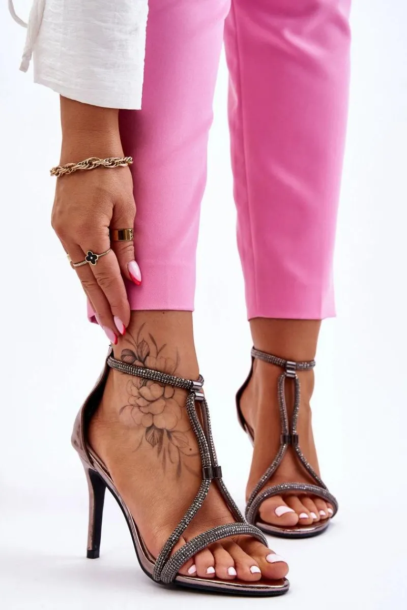 Szpilki Lakierowane|Sandały Na Obcasie>Damskie buty S.Barski Eleganckie Sandałki Na Szpilce Z Dżetami Srebrne Jenesis Srebrny