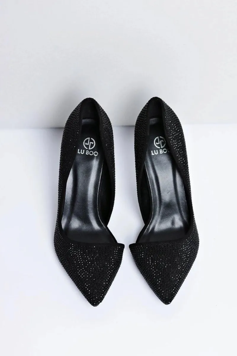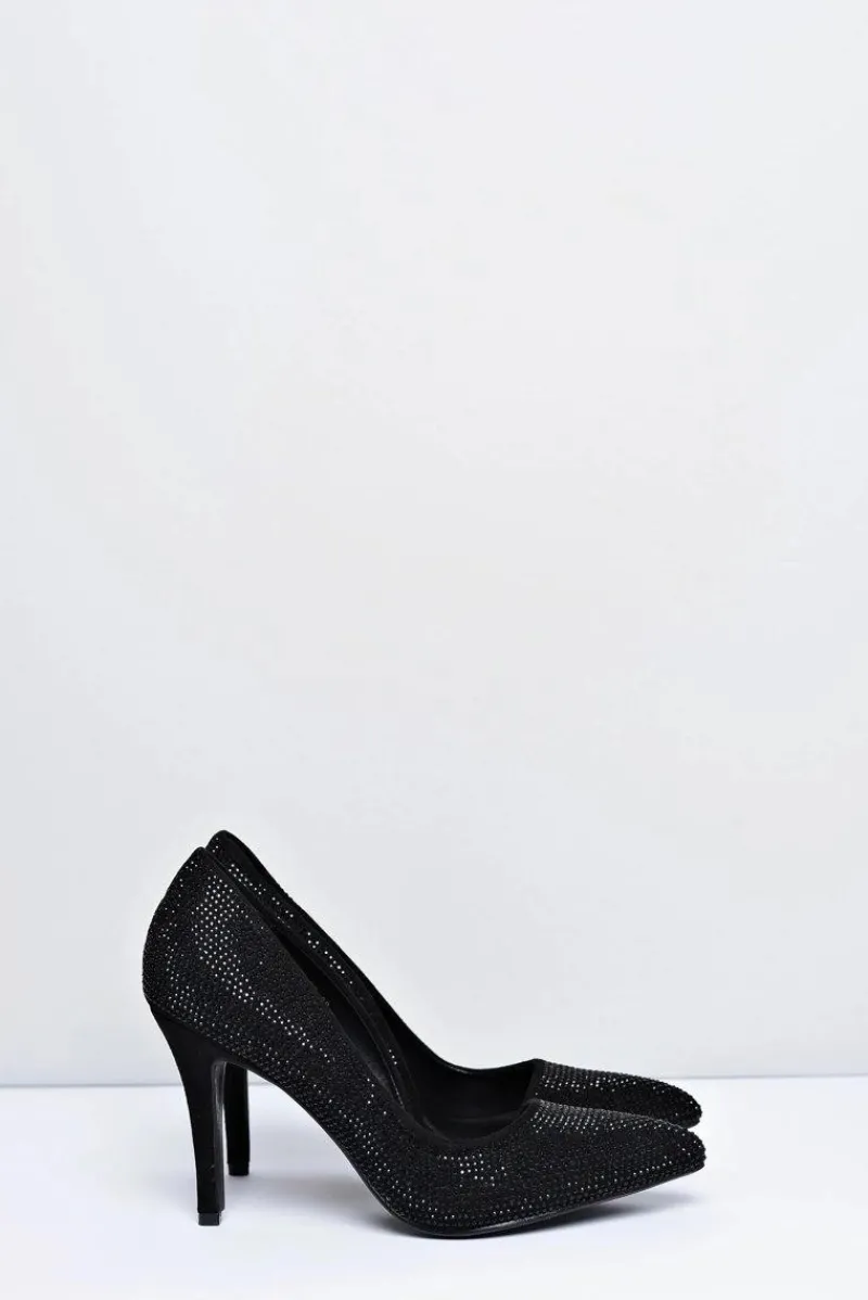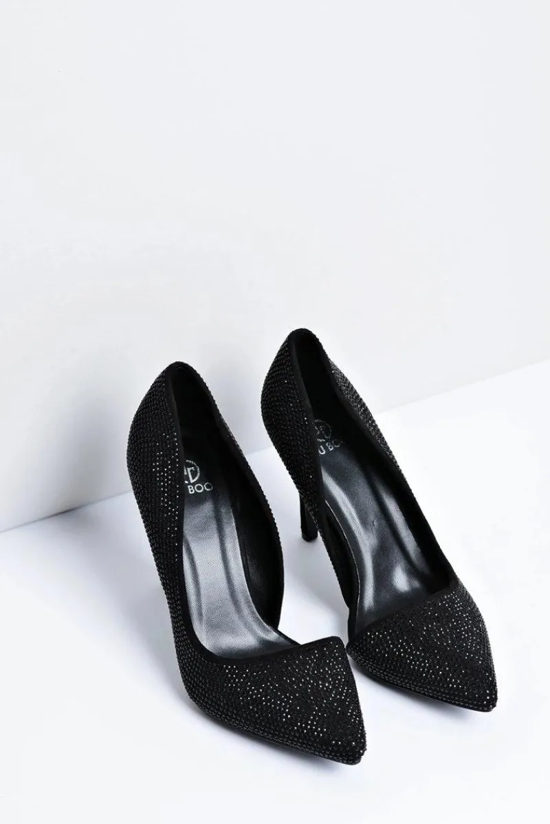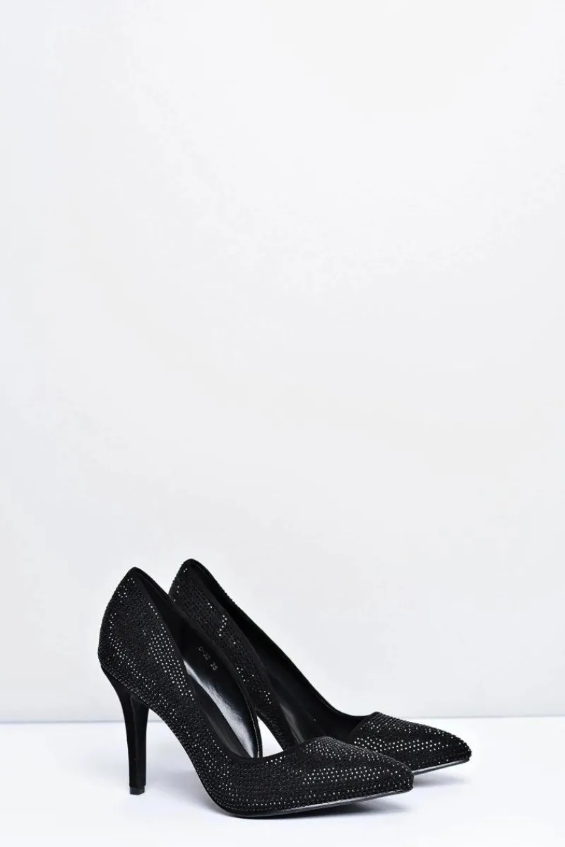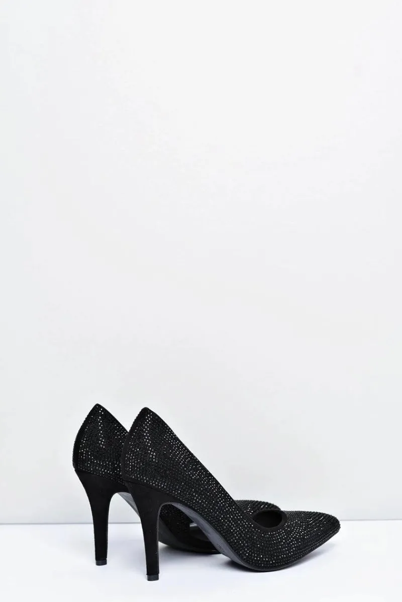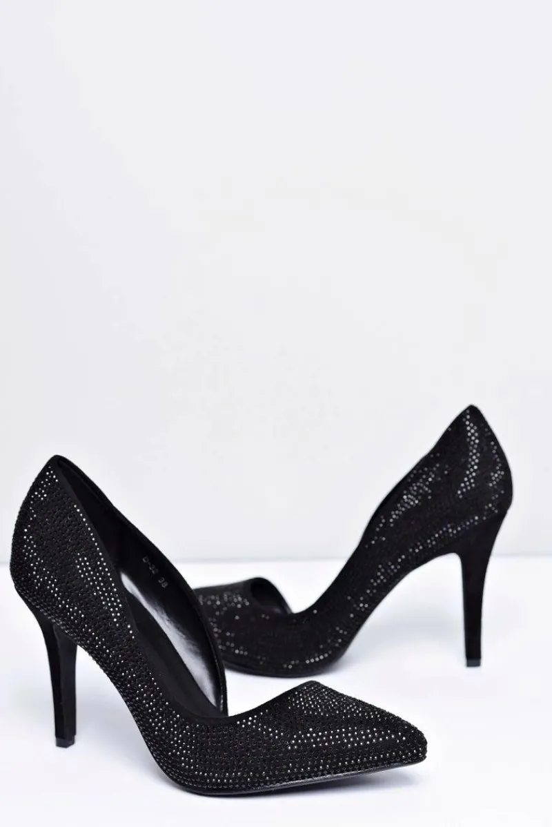 Szpilki Zamszowe>Boto Szpilki Damskie Czarne Zamszowe Cyrkonie Asymetryczne Santee