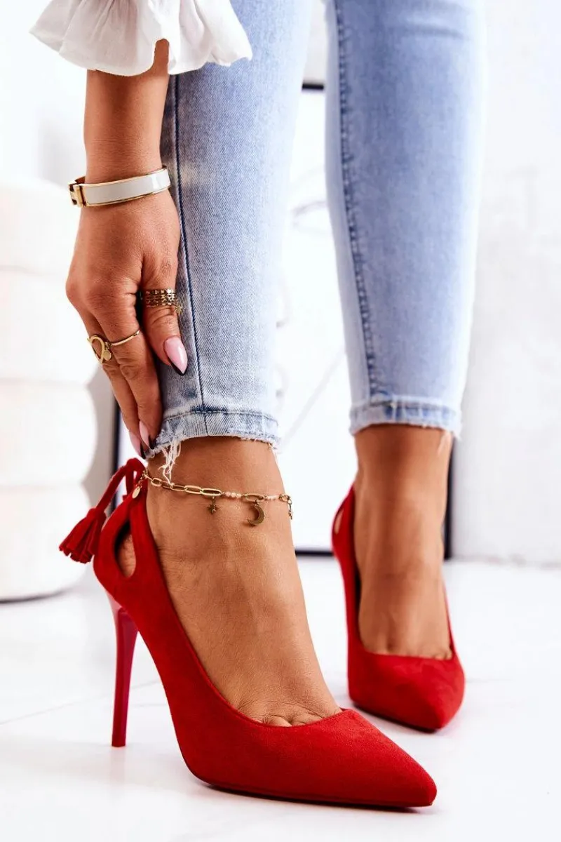 Szpilki Zamszowe>Boto Szpilki Damskie Zamszowe W Szpic Czerwone Leven