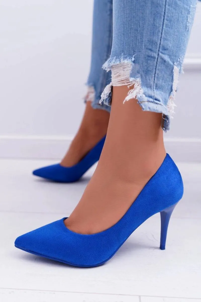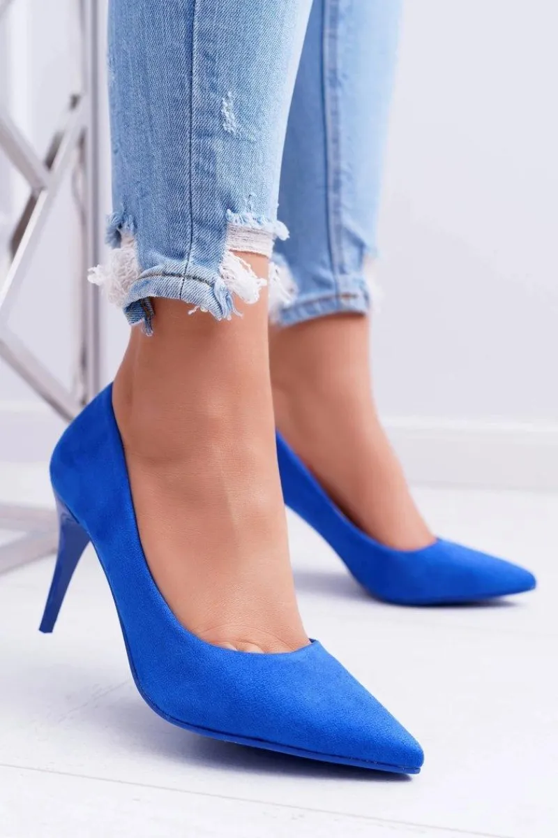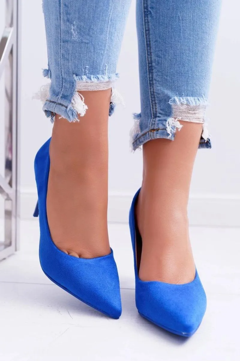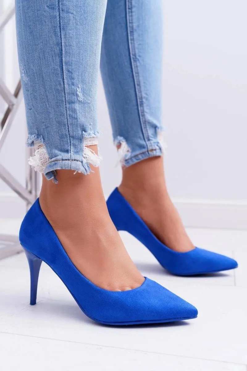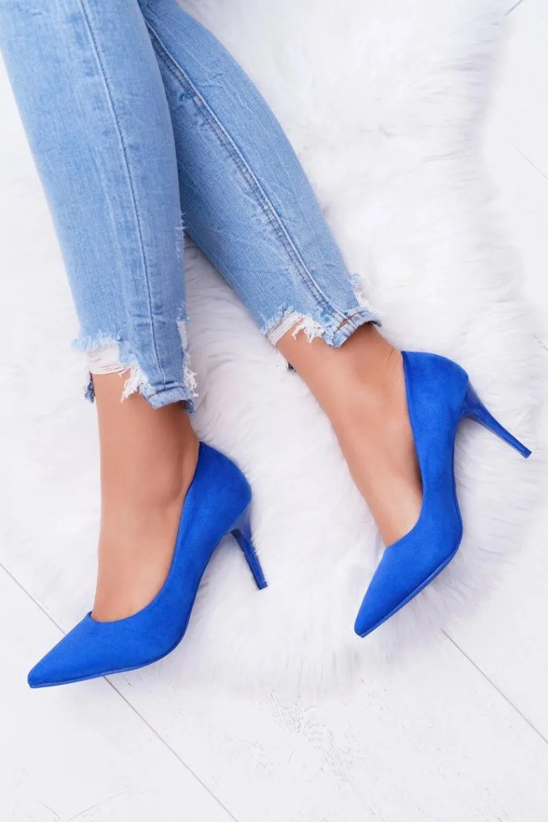 Szpilki Zamszowe>Boto Szpilki Damskie Zamszowe W Szpic Niebieskie Cream