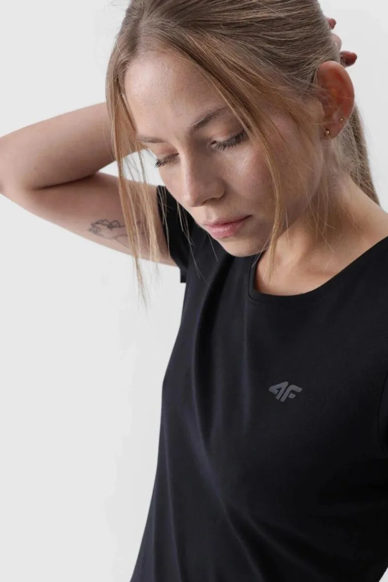 T-shirt damski idealnie sprawdzi się jako element zarówno casualowych, jak i sportowych stylizacji na co dzień. Posiada dopasowany krój slim, który przylega do ciała. Splot single jersey z jednostronną gładką powierzchnią sprawia, że koszulka jest elastyczna i komfortowa w noszeniu. Koszulka bez nadruku damska jest miękka w dotyku i dobrze się układa. Nie prześwituje oraz zapewnia trwałość i wygodę podczas całorocznego noszenia. T-shirt 4F damski jest wykonany w 95% z bawełny, dzięki czemu jest miękki, trwały i przyjemny w dotyku. Dzięki dodatkowi elastanu (5%) jest lekko rozciągliwa i wygodnie układa się na sylwetce. Okrągły dekolt jest zakończony lekkim ribowaniem.